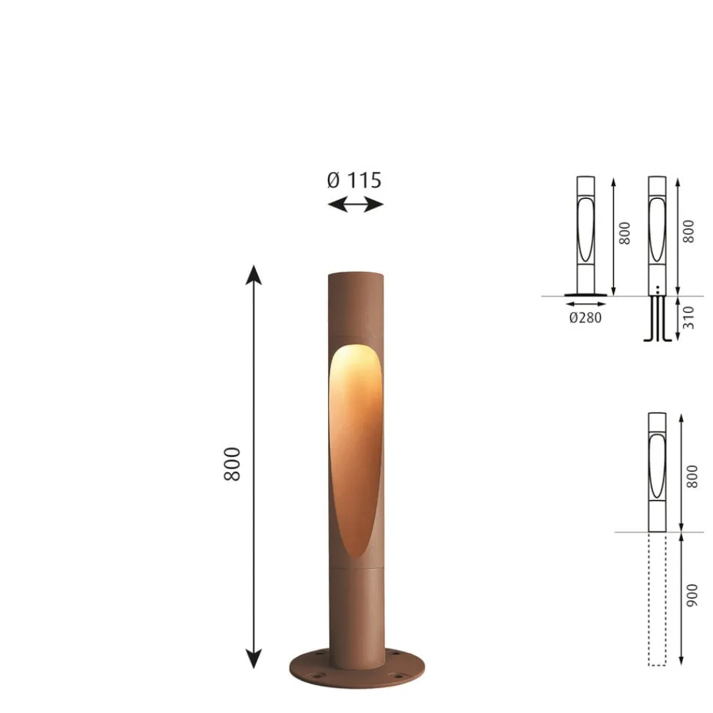 Kortenfarvet Flindt LED-gadelampe – moderne, effektiv og energieffektiv Med denne LED-udendørslampe har den danske designer Christian Flindt føjet endnu en udendørslampe til den succesfulde armaturserie, der bærer hans navn. Flindt, der har arbejdet sammen med den danske belysningsproducent Louis Poulsen siden 2006, arbejder med belysning, møbler og industrielt design og har designet LP Xperi-armaturet, LP Grand og Flindt Wall for Louis Poulsen, som han blev hædret med Danish Design Award for i 2019. LED-gadelampen Flindt giver ethvert udendørs område et asymmetrisk bredt, nedadrettet lys, der giver en klar omgivelsesbelysning og skaber en dekorativ accent, både når den er tændt og slukket. Også velegnet til gruppebelysning: Op til 6 lamper kan grupperes i en afstand på op til 5 meter. – inkl. bundplade – jordet