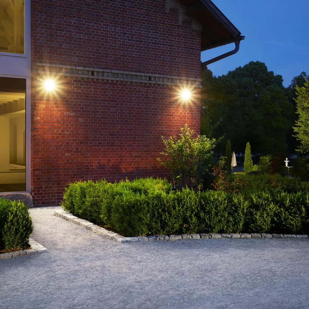 Moderne LED udendørs vægprojektør LS 150 i sortLS 150 er designet til belysning af store arealer i gårdspladser og indkørsler. Armaturhovedet er fleksibelt monteret på monteringsfoden til vægopbygning, så det kan justeres 80° horisontalt og 150° vertikalt. LED-lyskilden udsender universelt hvidt lys gennem et klart dæksel i en bred vinkel. Det hvide aluminiumshus er robust og stænktæt. Den udendørs vægspotlight tændes og slukkes via en ekstern kontakt (medfølger ikke).- Beskyttelsesklasse: IP44- Stødstyrke: IK03