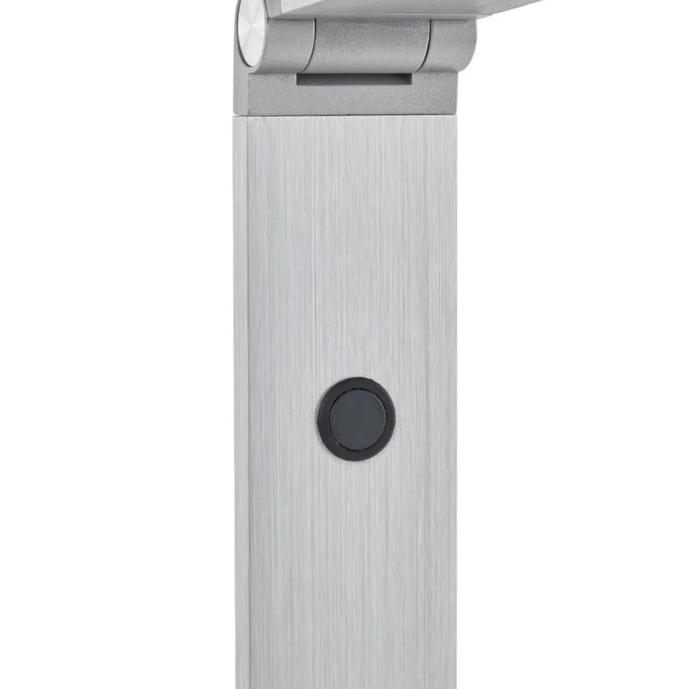LED-læselampe Resi af aluminium, med dæmper Resi har et moderne design, lampehovedet er fladt, og det har moderne udseende afrundede hjørner. LED-læselampen kan placeres i nærheden af en sofa eller lænestol for at give mere lys til læsning. Lyset kan justeres ved hjælp af de to led, og lysstyrken kan ændres fra et teknisk synspunkt. Dette gøres ved hjælp af berøringskontakten, som kan bruges til at justere lysstyrken i 3 niveauer (100%, 50% og 15%).
