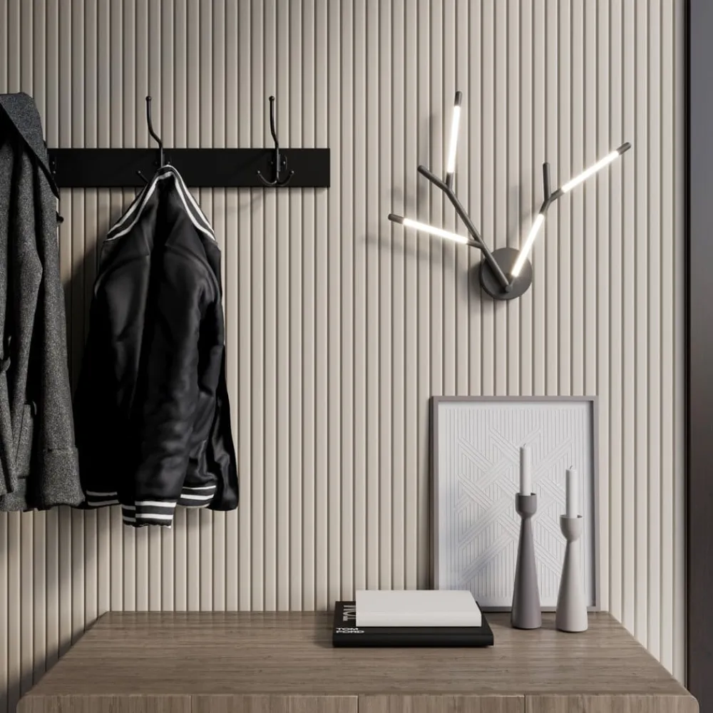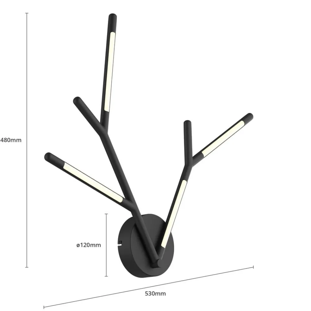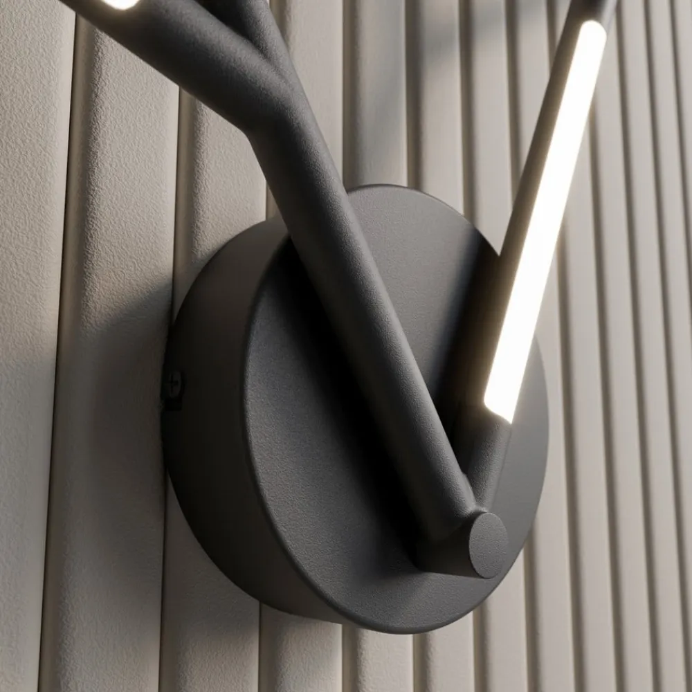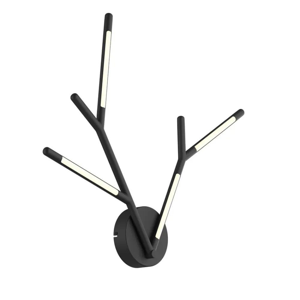 LED-væglampen Cuerno blev designet i form af et gevir. Væglampen lavet af metal med en mat sort finish og polycarbonat bliver en ekstraordinær blikfang på en væg, det er den moderne fortolkning af et jagtpokal, og i modsætning til et sådant trofæ giver det også lys.