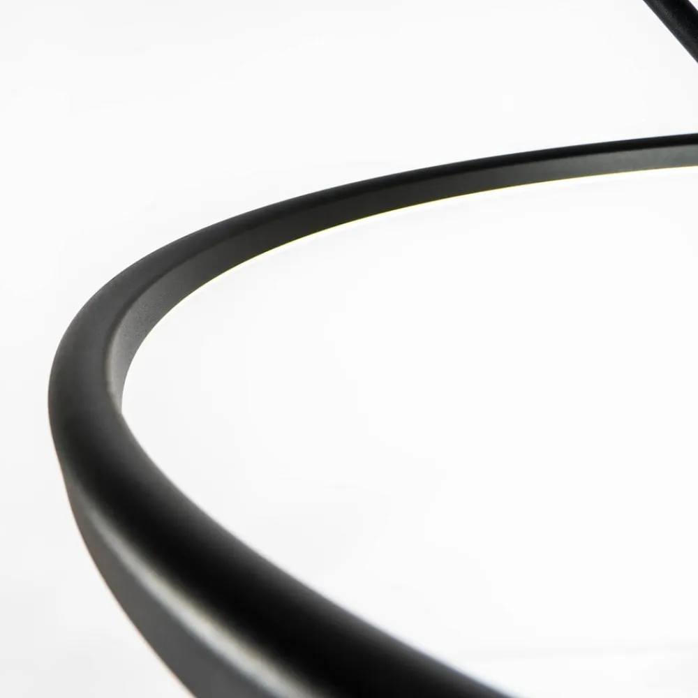 Elegant Virvera LED-buelampe med et moderne look – ideel som stuebelysning Virvera gør en god figur i moderne stuer med sit delikate, men alligevel ekspansive design. Overfladen på aluminiumsrammen er sort, hvilket ser markant ud og skaber en vis coolness. Skærmen er mere en ring, og den kan drejes, så lyset fra LED’erne ikke kun kan skinne nedad og give nok lys til læsning, men også kan pege op mod loftet og fungere som en projektør, hvilket giver et meget behageligt og blødt lys, der føles særligt hjemligt. Fodkontakten er placeret i LED-buelampens forsyningskabel, og ved siden af en sofa med et moderne design ser Virvera meget elegant og sublim ud.