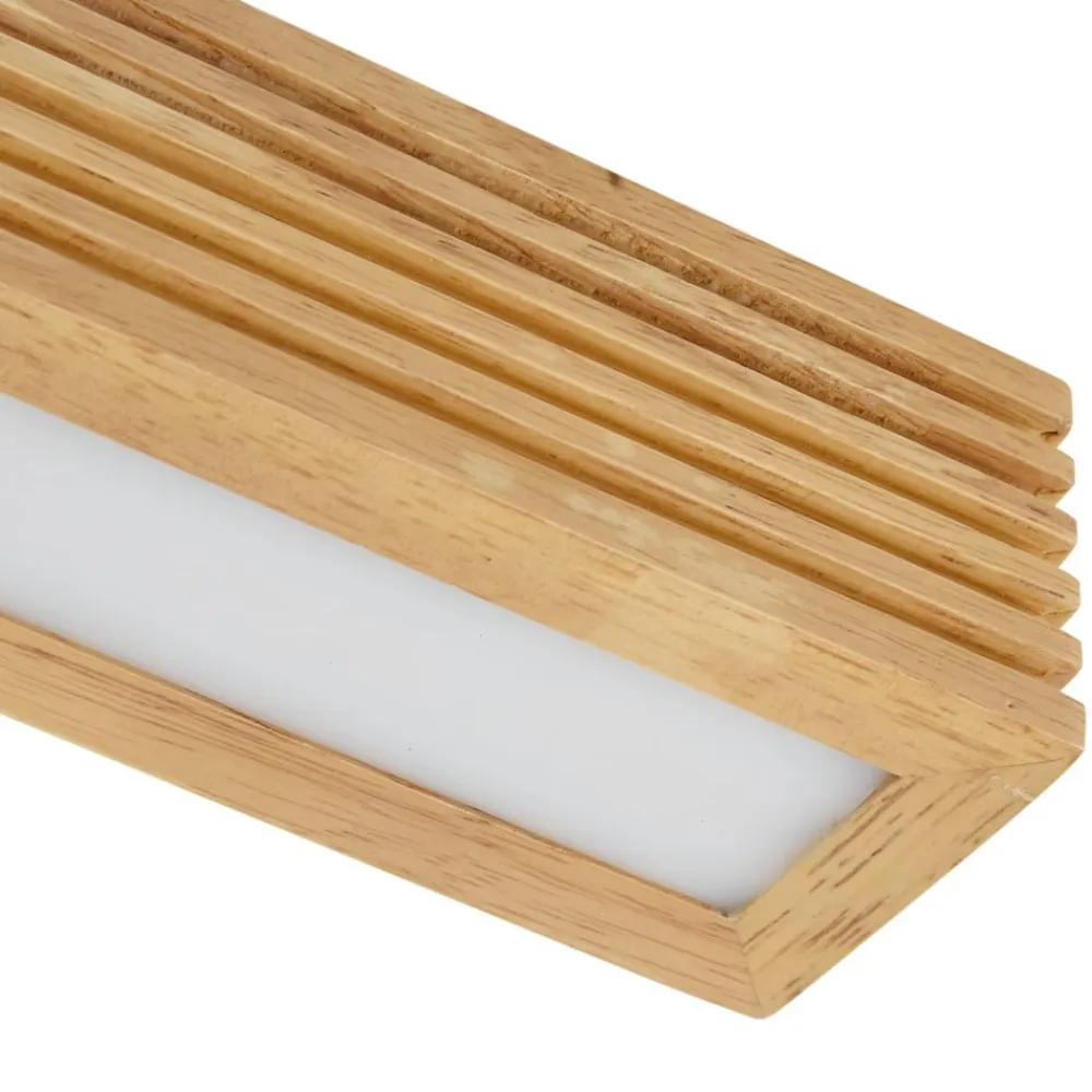 Den rektangulære LED-loftlampe Emara forener stilfuldt design med funktionel belysning. Denne lampe er fremstillet af egetræ og imponerer med sit naturlige, lyse trælook med sans for bevidste detaljer, der giver ethvert rum en varm og indbydende atmosfære. Den integrerede LED-lyskilde sikrer energibesparende lys med varmhvid lysfarve, der skaber en hyggelig stemning.