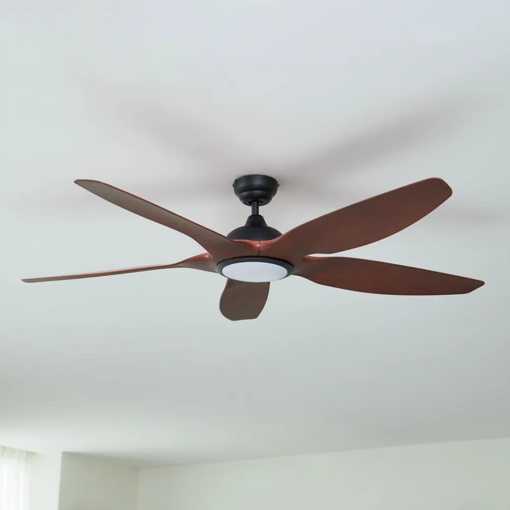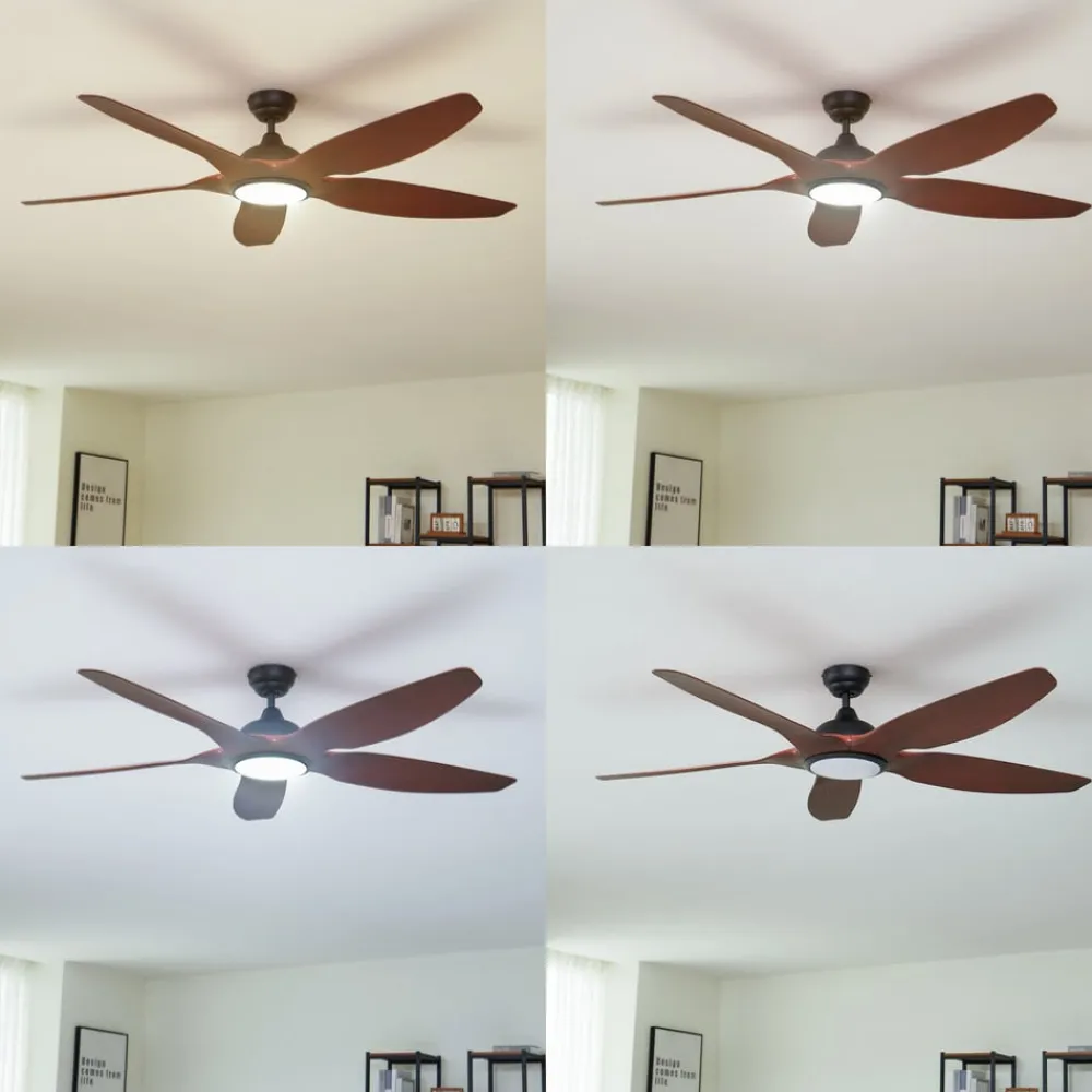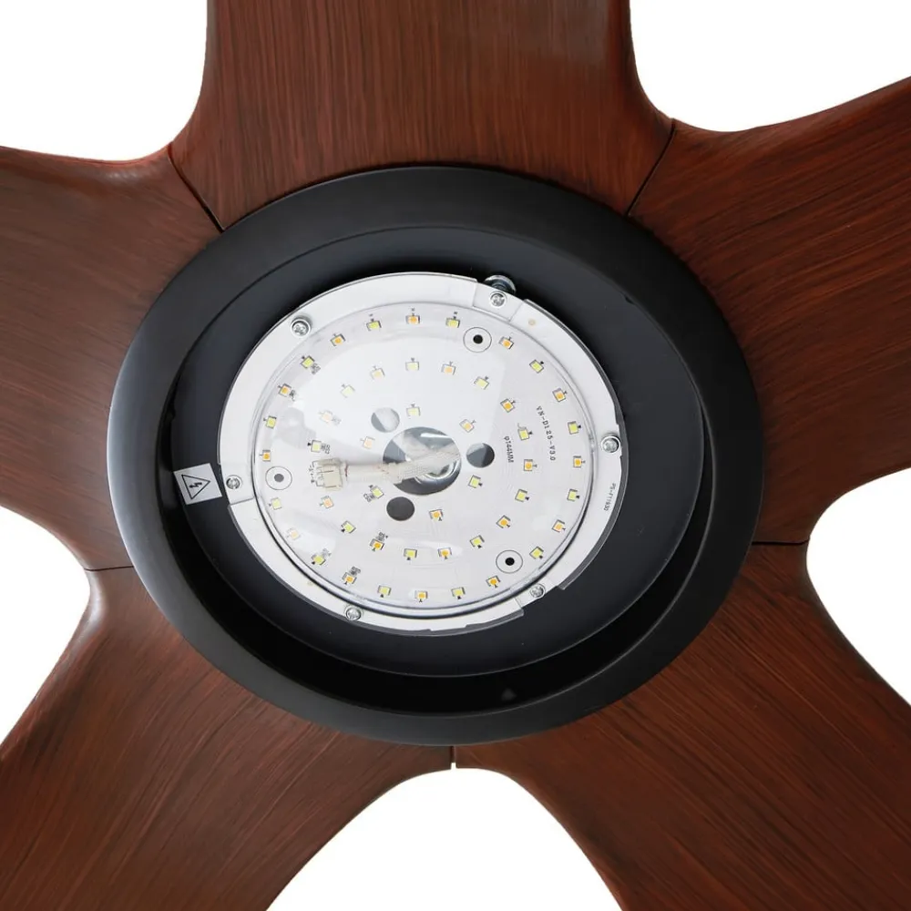 Omendo loftventilator med LED-belysning og CCT-funktion Omendo LED-loftventilatoren kombinerer elegant design i sort og valnød med innovativ belysningsteknologi. Udstyret med en kontrollerbar lysfarve (CCT) giver denne model mulighed for at justere lysfarven til den ønskede atmosfære – fra varme til kølige toner til enhver situation. Den integrerede LED-lyskilde lover ikke kun en lang levetid, men også høj energieffektivitet, hvilket gør ventilatoren til et smart valg til en bevidst livsstil. Ventilatorens moderne stil passer perfekt ind i forskellige rumkoncepter, hvilket gør den ideel til stuer, spisepladser og køkkener. Med den medfølgende lysdæmper kan lyset nemt justeres for at skabe den rette lysstyrke til ethvert tidspunkt på dagen og enhver begivenhed. Tekniske data – DC-motor – 5 W ved 102 o/min – 19,3 W ved 132 o/min – 38 W ved 163 o/min – Luftcirkulation 70/100/146,8 m³/min – Optimal rumstørrelse 10-15 m² – Lydeffektniveau 53 dB (A) – Fjernbetjening uden batterier
