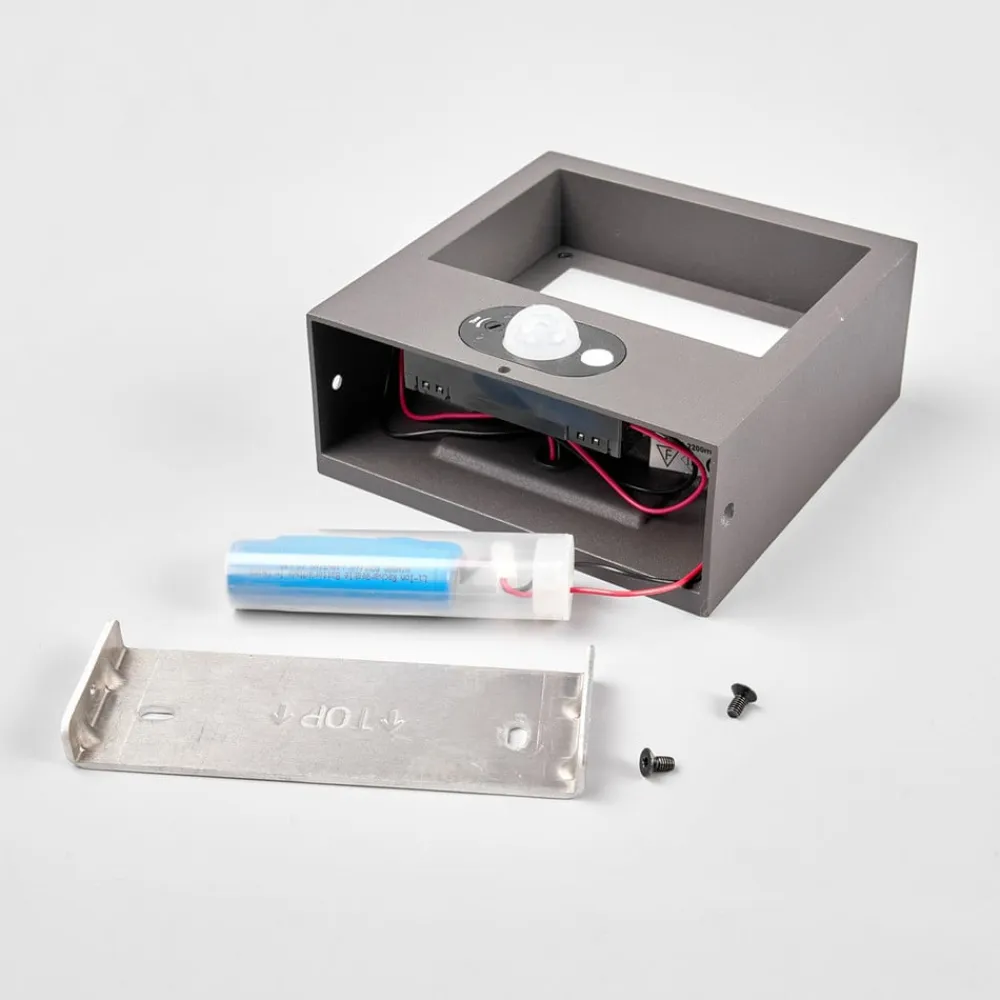 Attraktivt designet udendørs LED-væglampe med sensor Mahra Mahra har en kantet form og er ikke bare en udendørs LED-væglampe med sensor. Nej, den er også udstyret med moderne solcelleteknologi, og derfor kan Mahra installeres uafhængigt af lysnettet og skal kun sørge for, at der kommer nok sollys til solpanelet på toppen i løbet af dagen. LED’erne i en varmhvid lysfarve er rettet mod jorden og udsender (afhængigt af installationshøjden) et ret indirekte lys, som er rimeligt klart på trods af solcelleteknologien. Sensoren er placeret på undersiden af den udendørs LED-væglampe. Den reagerer på bevægelser fra personer, der nærmer sig lampen. Lysets varighed kan indstilles fra 8 sekunder til 8 minutter, og rækkevidden er mellem 4 og 6 meter. Mennesker registreres i en vinkel på 120°. Det er værd at nævne, at der er to grundlæggende tilstande, som bevægelsessensoren kan indstilles til. Den første tilstand er en simpel tænd/sluk-variant, hvor lyset slukkes helt, når der ikke registreres flere bevægelser. I den anden tilstand reduceres lysstyrken til 15 procent, så der opretholdes et blødt orienteringslys hele natten – RAL 840-M