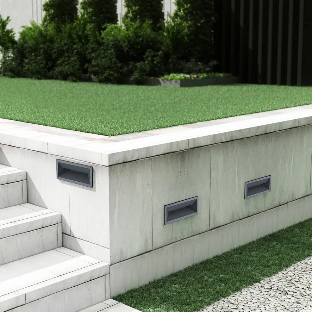 Mørkegrå Jaano LED-indbygningslampe – en moderne lyskilde til udendørsarealer Den moderne Jaano LED-vægindbygningslampe giver nyttige orienteringspunkter rundt om i huset. Jaano er indbygget i væggen og giver blændfri, nedadrettet belysning. Lyset fra de integrerede, varmhvide LED’er giver god belysning med lavt strømforbrug, så når du køber den moderne LED-indbygningslampe til udendørs brug, vælger du et energieffektivt armatur, der er perfekt til brug på husets facade og også giver diskret belysning.