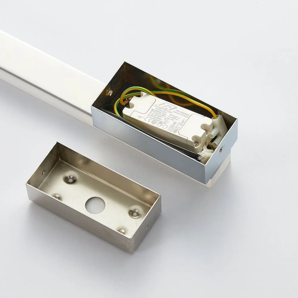 Skinnende forkromet Julie LED-væglampe, IP44 Julie er en ideel LED-væglampe til badeværelset. Det skyldes for det første, at kapslingsgraden IP44 giver tilstrækkelig beskyttelse mod fugt. For det andet har den forkromede applikationer, som harmonerer meget godt med standardbadeværelsesarmaturer, da disse normalt også har en forkromet finish. Diffusorens satinfinish gør det muligt for lyset at skinne særligt jævnt ud i omgivelserne og skabe en hyggelig atmosfære.