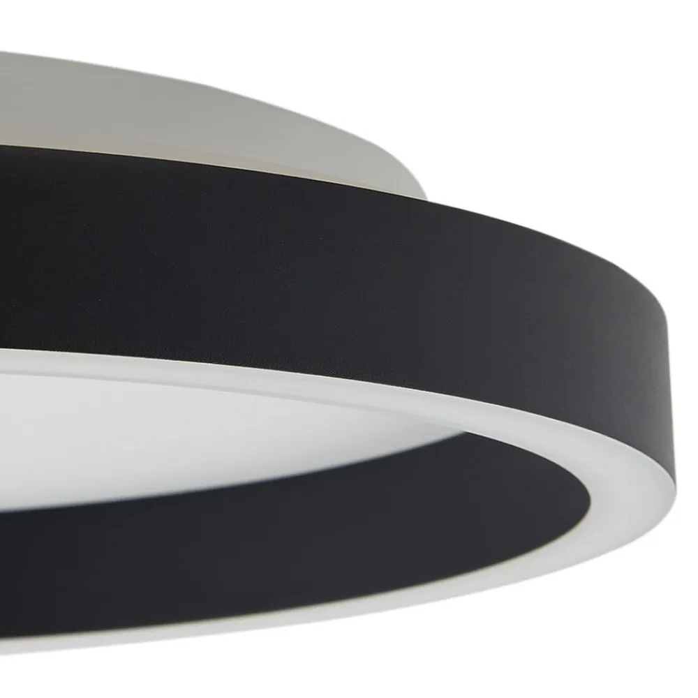 LED-loftlampen Rotundo kombinerer funktionelt design med intelligent belysningsteknik. Ved hjælp af en DIP-kontakt kan lysfarven indstilles til varmhvid (3.000 K) og universalhvid (4.000 K) før installationen. De fastmonterede LED’er er kendetegnet ved deres energieffektivitet og tilbyder en langtidsholdbar lyskilde.