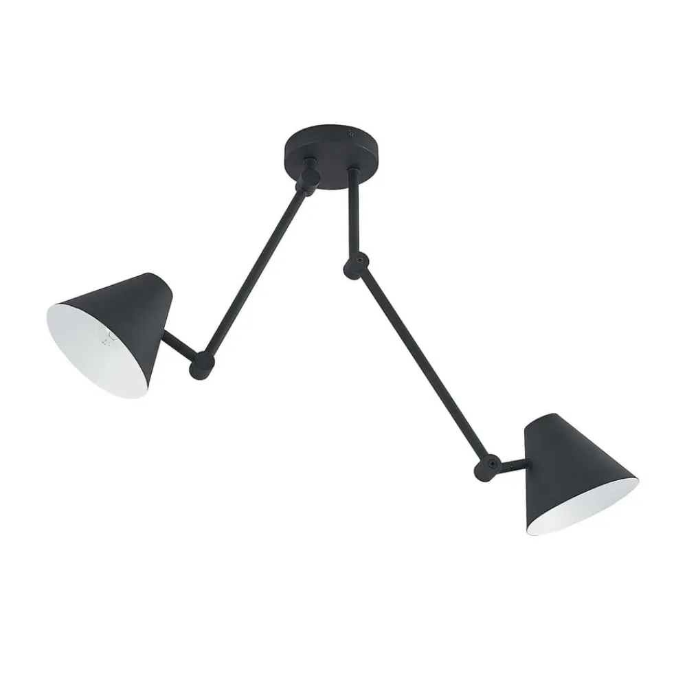 Phina er en praktisk loftslampe med en moderne karakter. Den sidder på et kompakt, rundt loftsophæng, hvorfra to slanke arme stiger op, som hver har to bevægelige led og ender i stilfulde lampeskærme. Armaturet består udelukkende af sort stål, mens det indvendige af skærmene fremstår i en harmonisk hvid farve. Det moderne design passer særligt godt i en stue eller spisestue og sætter diskrete accenter på flade lofter. Phina loftslampen kan monteres med E27-pærer, og de leddelte arme giver fleksibel belysning.
