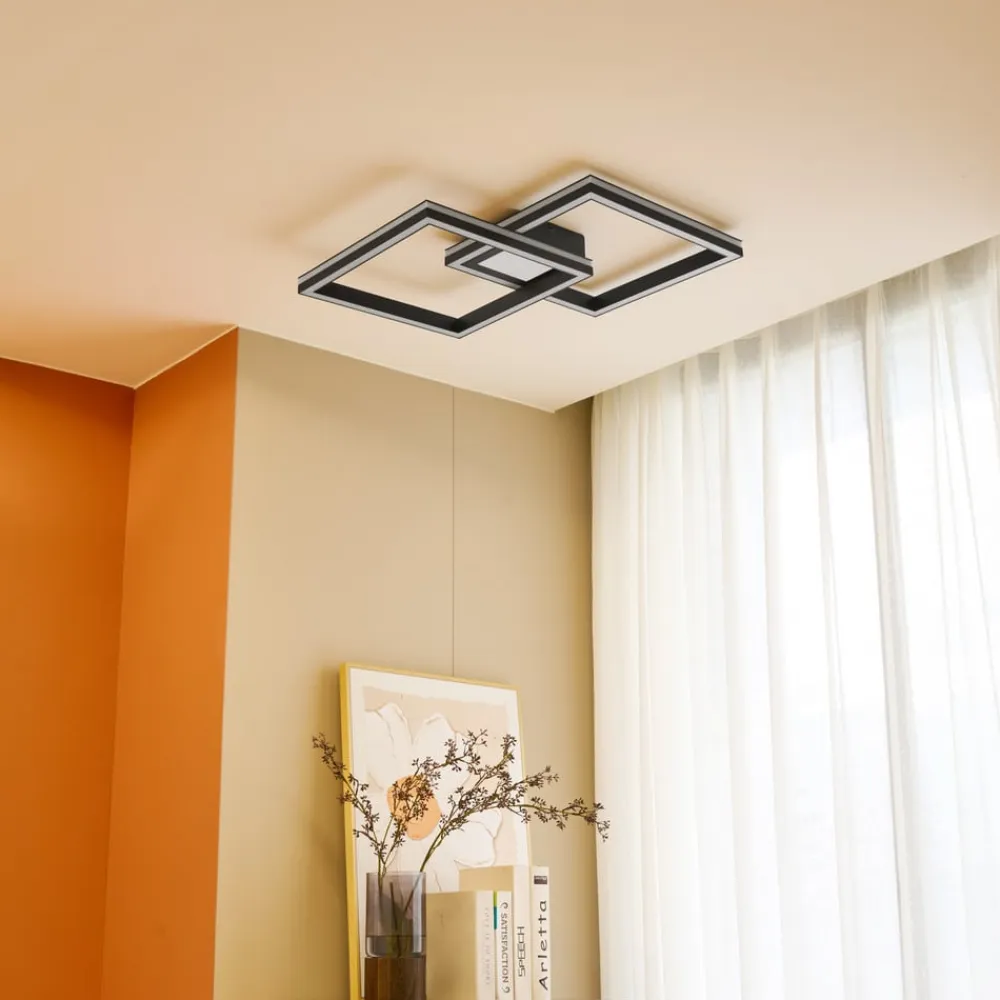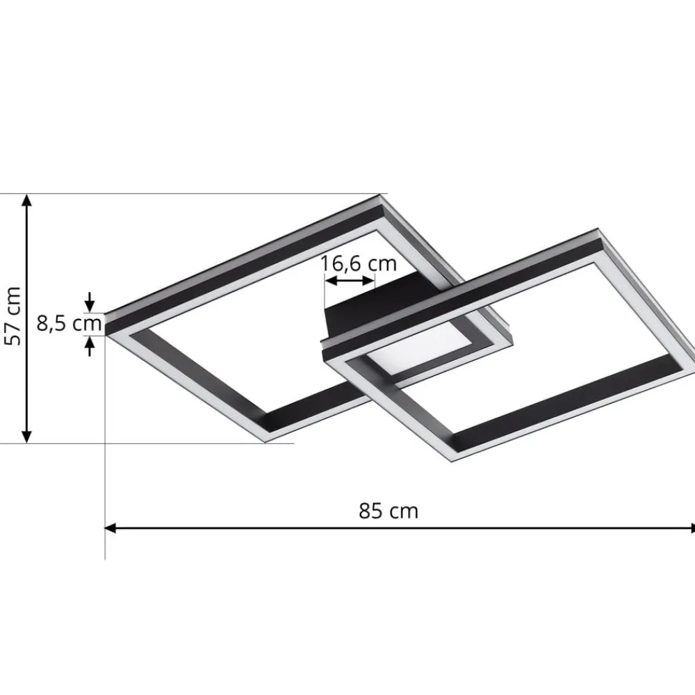 Firkantet LED-loftslampe Tjado – en praktisk ledsager til dine egne fire vægge med dæmpning og CCT-funktion Denne loftslampe vil også få dit hjem til at stråle i ny pragt. Farven på lyset fra loftslampen kan ændres, så det passer til dit humør. Loftslampen kan nemt tændes og slukkes ved hjælp af en fjernbetjening. Den har et attraktivt design og passer smukt ind i din indretning. Dæmpningsfunktionen giver dig mulighed for at justere lysstyrken ved hjælp af en fjernbetjening. Den sorte loftslampe kombinerer alle de kvaliteter og højdepunkter, der kendetegner Lucande-mærket. Den integreres perfekt i ethvert rum og skaber en fantastisk, hyggelig atmosfære. Det behagelige lys fra armaturet får ethvert rum til at se fantastisk ud. En hyggelig atmosfære er garanteret med denne loftslampe – der også kan dæmpes ved hjælp af den gratis Tuya-app (tilgængelig til iOS og Android)