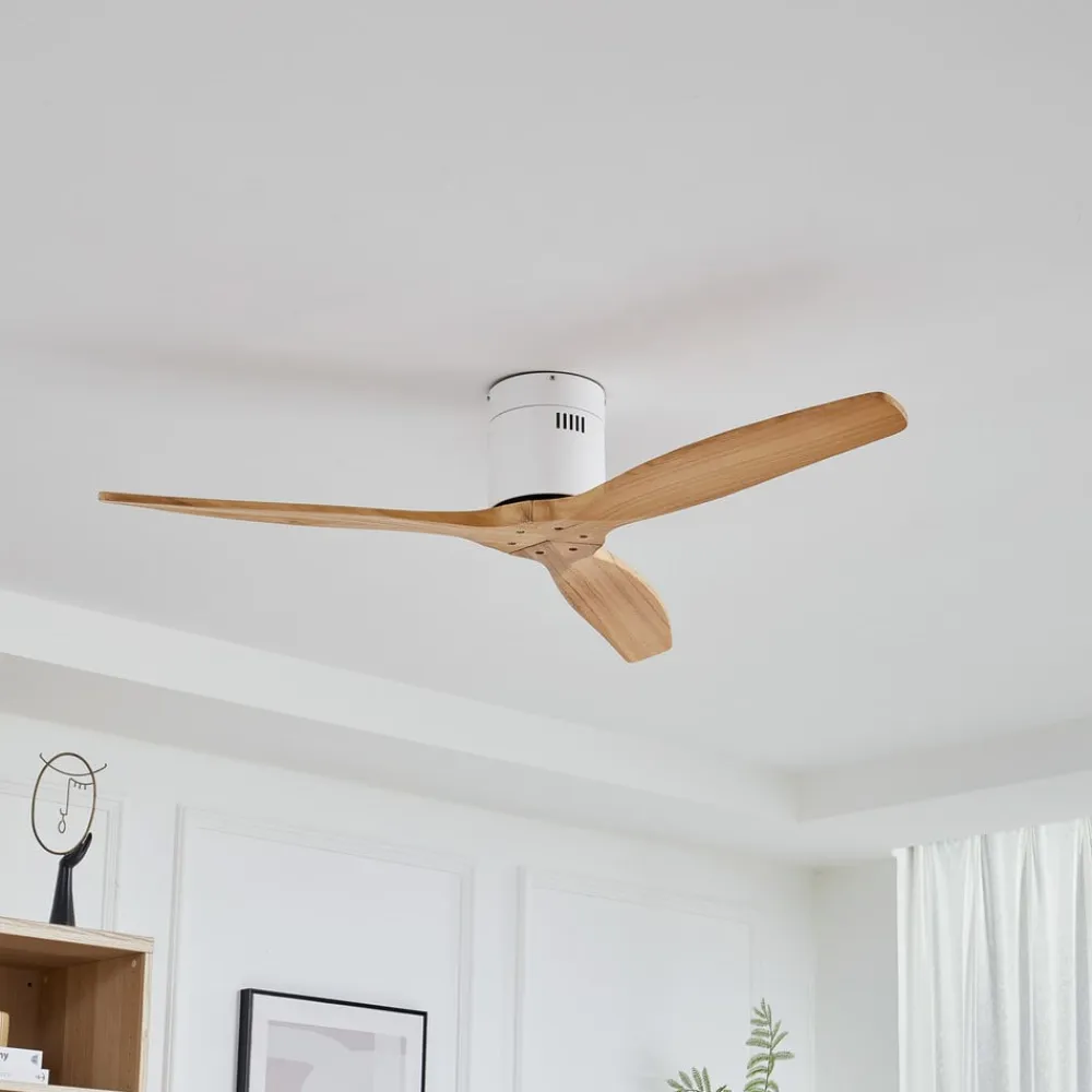 Lucande loftventilator Vindur, hvid/træ, DC, støjsvag