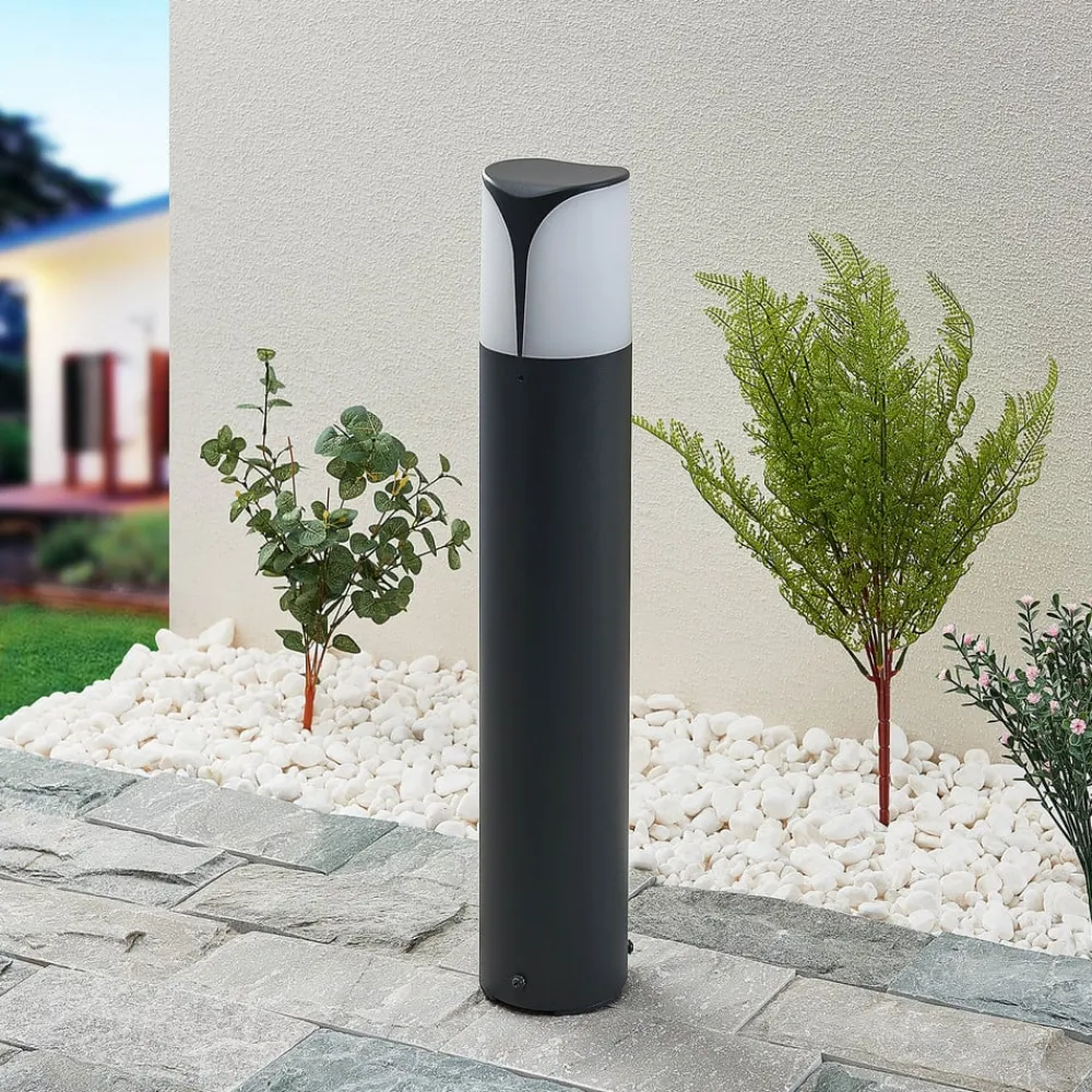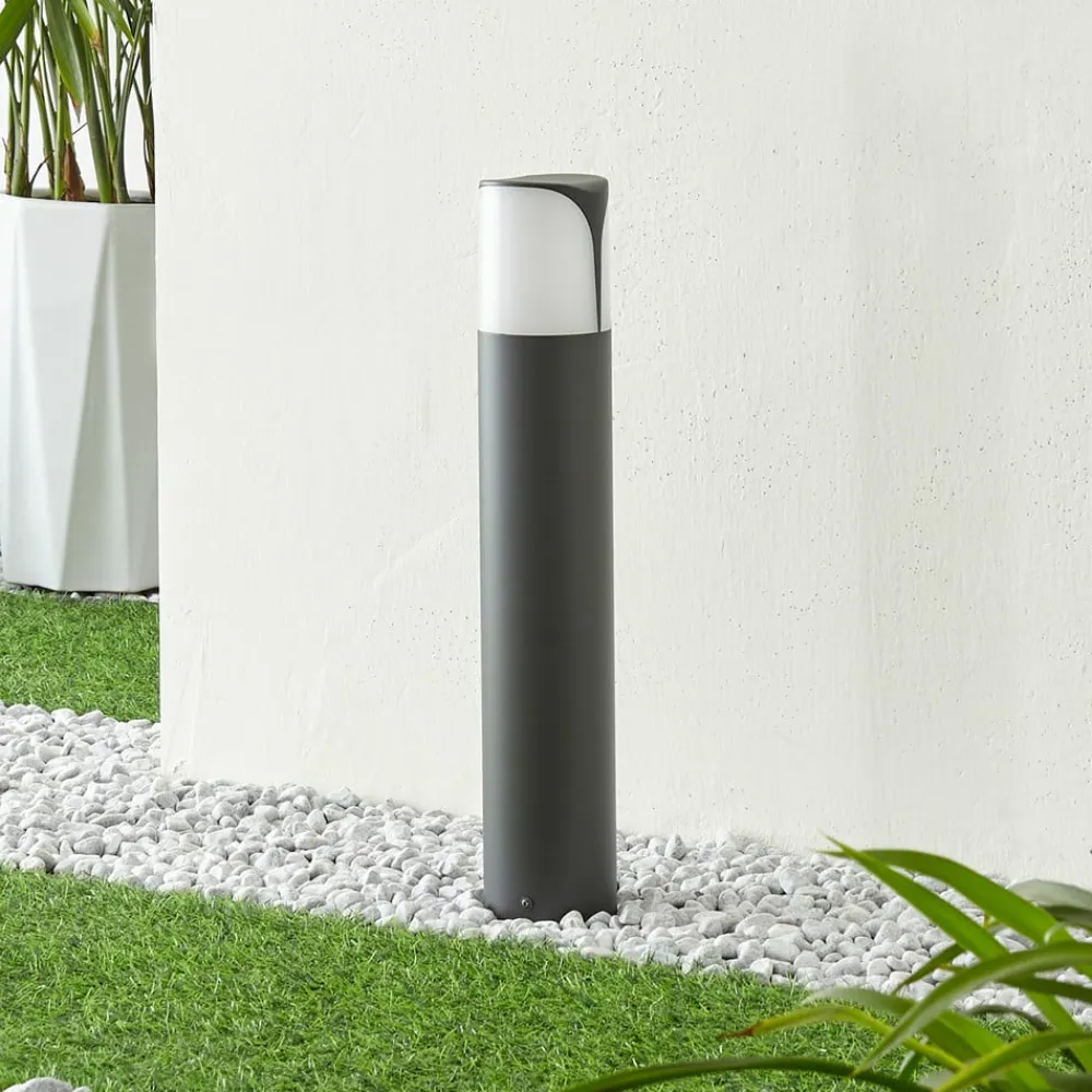 Paikea sokkellampe – moderne belysning til udendørsarealer Den elegante Paikea sokkellampe kan bruges i mange forskellige udendørsarealer. Uanset om det er på små vægge, trapper eller terrasser, giver den lille udendørslampe et pålideligt og tilstrækkeligt lys. Designet er kendetegnet ved den mørkegrå, runde aluminiumskrop, som er udstyret med en opalhvid diffusor på toppen. Den sender lyset ud i omgivelserne fra alle sider og sørger for tilstrækkelig sikkerhed i mørket.