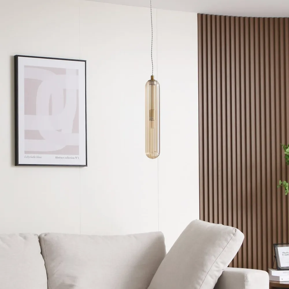 Lucande Pendellamper>Freylin pendel, 1-lys, rav, glas, 6 cm