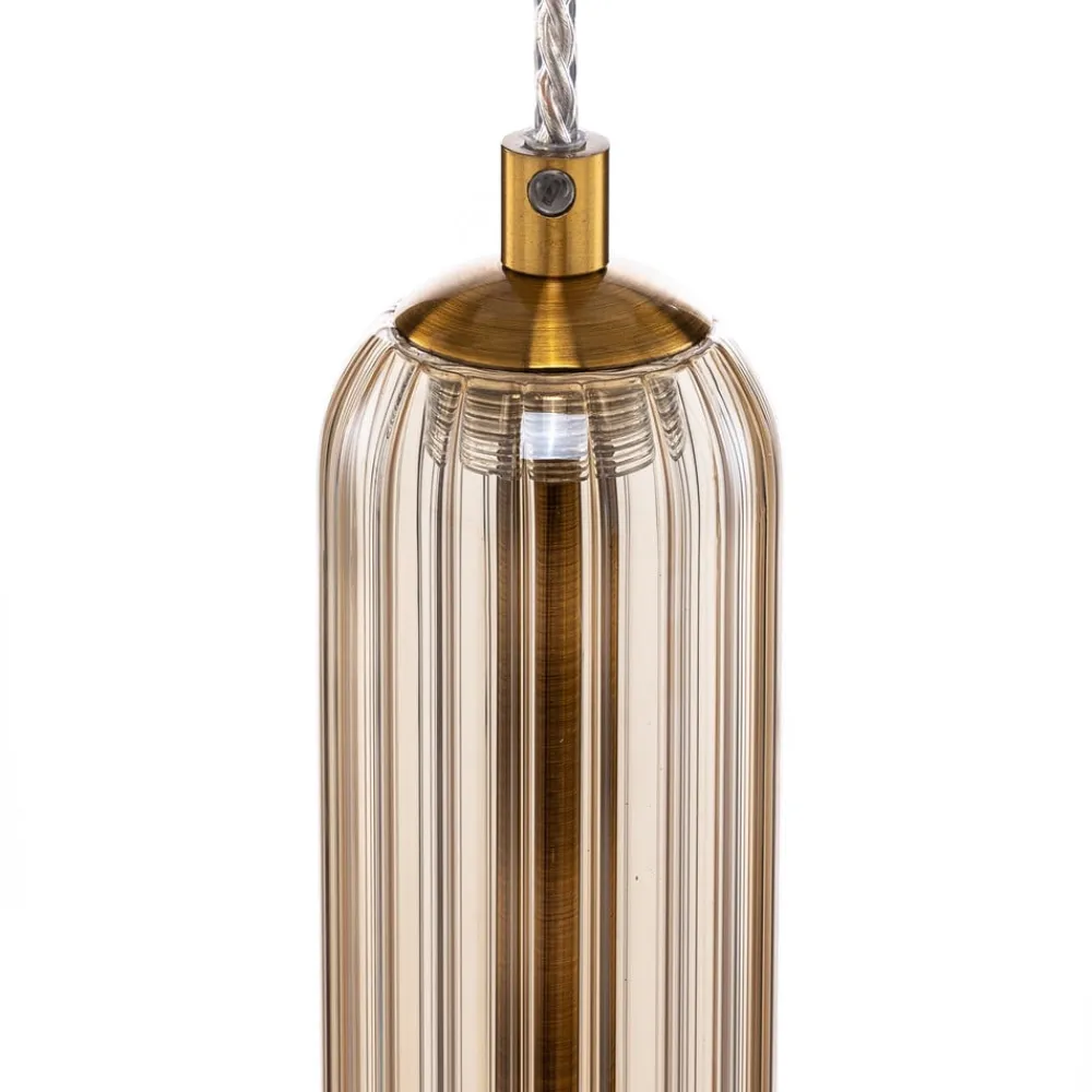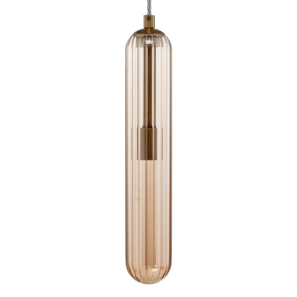 Freylin – en nostalgisk tilføjelse til indendørs brug med en lampeskærm af glas Denne lampe vil få dit hjem til at stråle i ny pragt. Armaturet imponerer med sin mærkevarekvalitet fra Lucande med en fremragende hyggelig fornemmelse og tiltalende design. Det giver dig mulighed for at justere lysstyrken efter eget ønske ved hjælp af en ekstern lysdæmper (medfølger ikke). Freylin fuldender effektivt belysningskonceptet i din bolig med sit flotte udseende. Lampen i farverne rav og messing kan udstyres med pærer med G9-sokkel. Den skaber et smukt look og tilføjer atmosfære til dine rum. Det vellykkede lys fra pendlen er ideelt til at sætte scenen i ethvert rum. Lad din stue stråle i ny pragt takket være denne lampe.