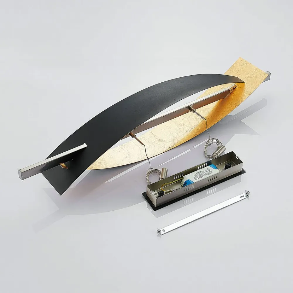 Den dæmpbare LED-hængelampe Marija imponerer med to kunstfærdigt forbundne skærme i guld og sort Lampeskærmen på LED-hængelampen Marija er et blikfang, da den består af to lange og slanke metalskærme, der er forbundet med et lyselement i en gylden farve. Selve skærmene er guldfarvede på indersiden og sorte på ydersiden. Det giver et samlet look, som både er moderne, rustikt og hyggeligt. De lodrette skærme på Marija LED-hængelampen kan placeres i forskellige højder i rummet takket være højdejusterbaren og oplyser rummet i et behageligt, varmhvidt lys. Lysstyrken kan reguleres i tre niveauer ved hjælp af vægkontakten.