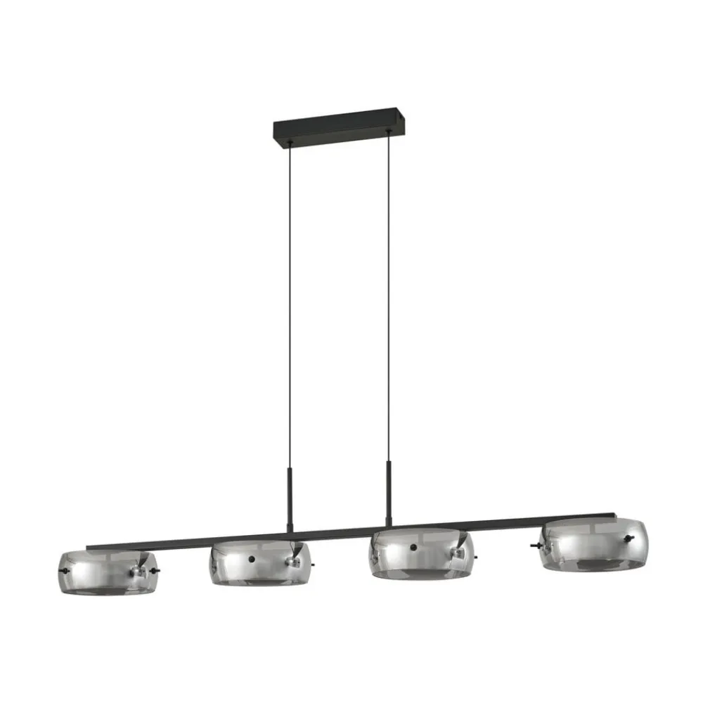 LED-hængelampen Martis i røggrå og sort forener moderne design med funktionel belysning. Lampen er fremstillet af metal og glas og passer perfekt ind i moderne boligrum. Den 4 lyskilders konstruktion sikrer en jævn belysning, mens den varmhvide lysfarve på 3.000 K skaber en behagelig atmosfære. Den integrerede LED-teknologi garanterer ikke kun en lang levetid, men også energieffektiv belysning, der oplyser rummet på stilfuld vis.