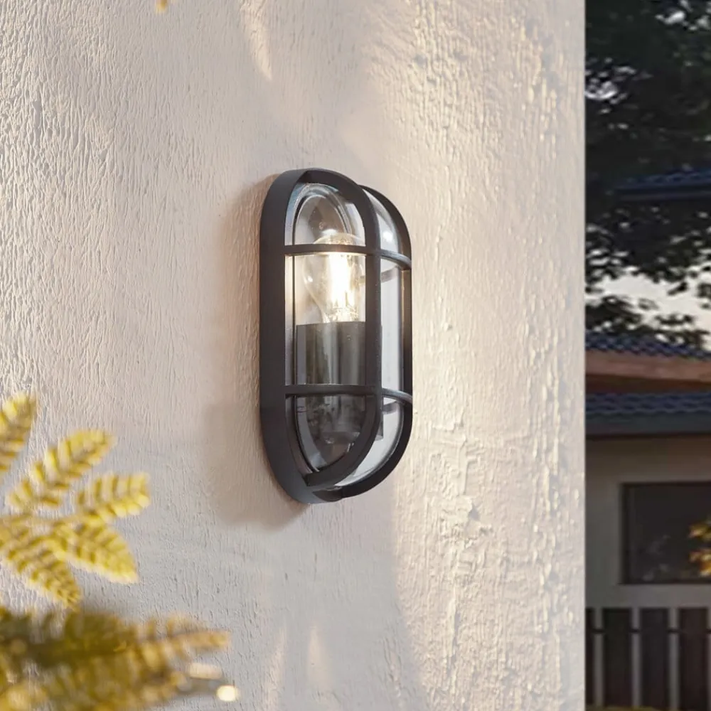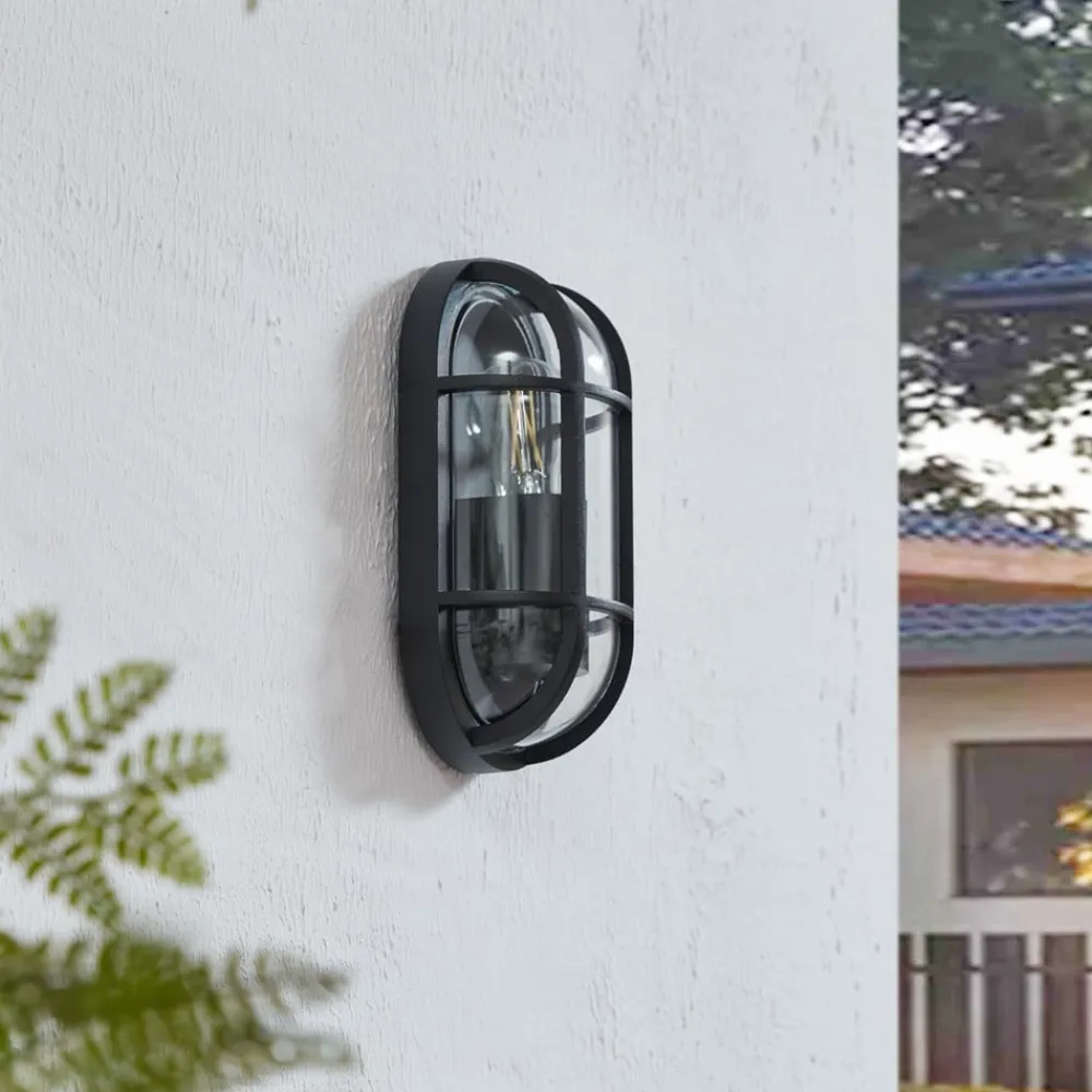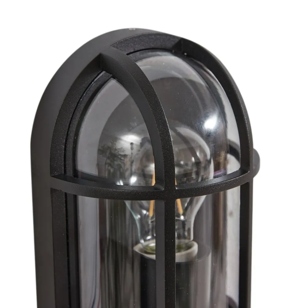 Serine udendørs væglampe i marine look Oplev, hvordan Serine udendørs væglampe ikke kun oplyser dit udendørs område, men også i høj grad præger atmosfæren. Med en IP65-beskyttelsesgrad er denne lampe specielt designet til at modstå elementerne og give en pålidelig og langvarig lyskilde på både altaner og terrasser. Højden på 27 cm og det attraktive design i klassisk sort passer harmonisk ind i ethvert miljø og skaber en atmosfære, der kan virke både beroligende og energigivende. Udtrykket afrundes af et sort gitter foran skærmen, som giver udendørslampen et maritimt look. Da lyskilden er synlig gennem den gennemsigtige glasskærm, er den ideel til brug som dekorativ lyskilde.