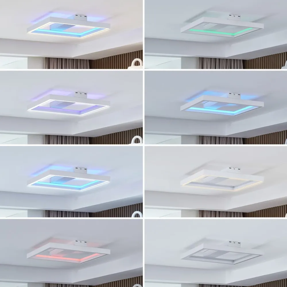 Dæmpbar LED-loftslampe Tjado i hvid farve med CCT-funktion Lad din indretning stråle med denne loftslampe. Takket være det smukke design supplerer lampen dit personlige indretningskoncept og kan også bruges som dekoration, når den er slukket. Den er nem at tænde og slukke med en fjernbetjening og kan dæmpes efter eget ønske med en fjernbetjening. Lysfarven kan vælges, så den passer til dit humør. Denne lampe kombinerer alle Lucande-mærkets kvaliteter og særlige egenskaber. Lampen vil passe perfekt ind i dit rum og skabe en vidunderlig atmosfære. Den passer effektivt ind i enhver eksisterende boligstil og kan ikke kun bruges som belysning, men også som et vidunderligt dekorativt element. Skab en hyggelig stemning i dit hjem med denne loftslampe – kan også styres via den gratis Tuya-app (tilgængelig til iOS og Android)