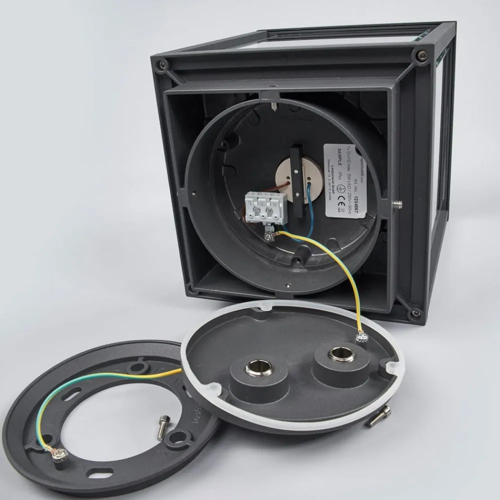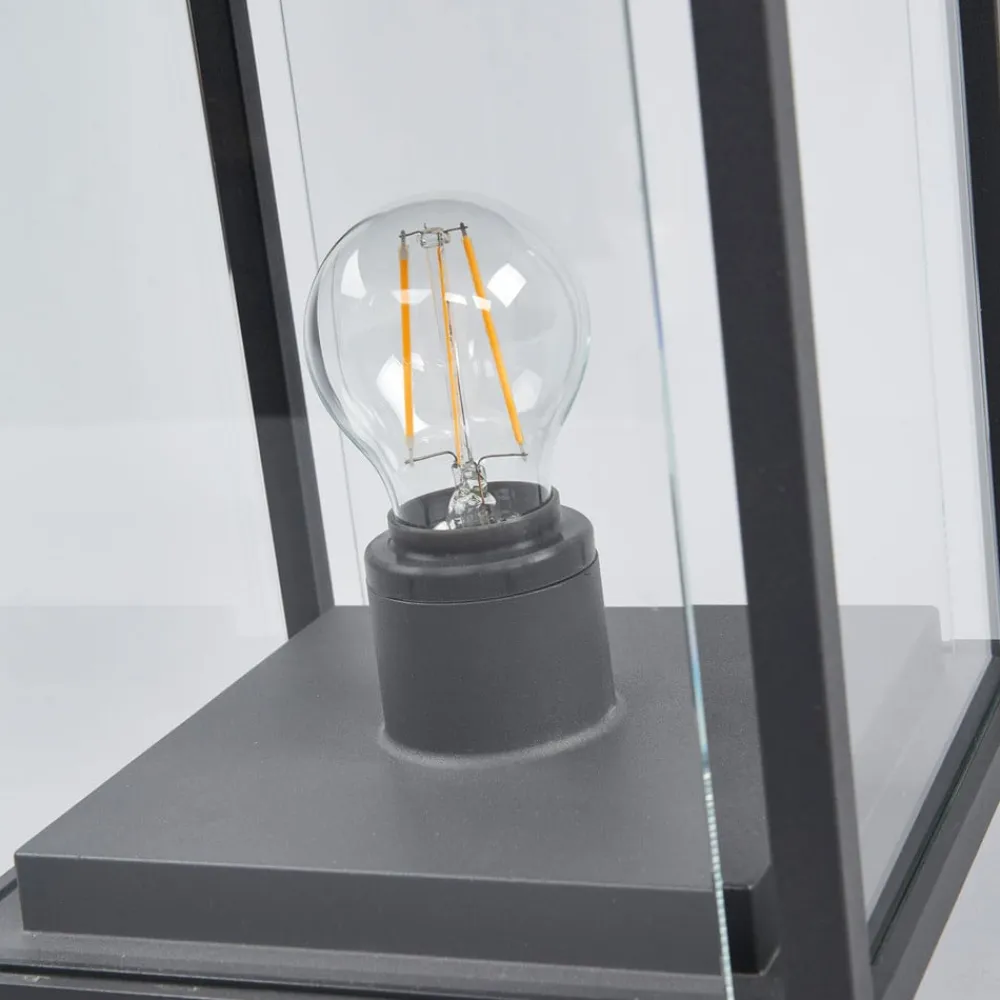 Smuk Annalea sokkellampe med et moderne design Annalea er en sokkellampe, der stort set er lavet af klart glas, hvorfor udseendet er præget af en vis lethed. Det komplementære stel er lavet af aluminium og har en mørkegrå finish. Begge dele harmonerer meget godt med hinanden og gør Annalea til en lyskilde med et attraktivt udseende. Hvis armaturet monteres på en væg eller en sokkel, skaber det en behagelig tilstedeværelse og oplyser omgivelserne godt, så man kan finde vej, selv når det er mørkt.