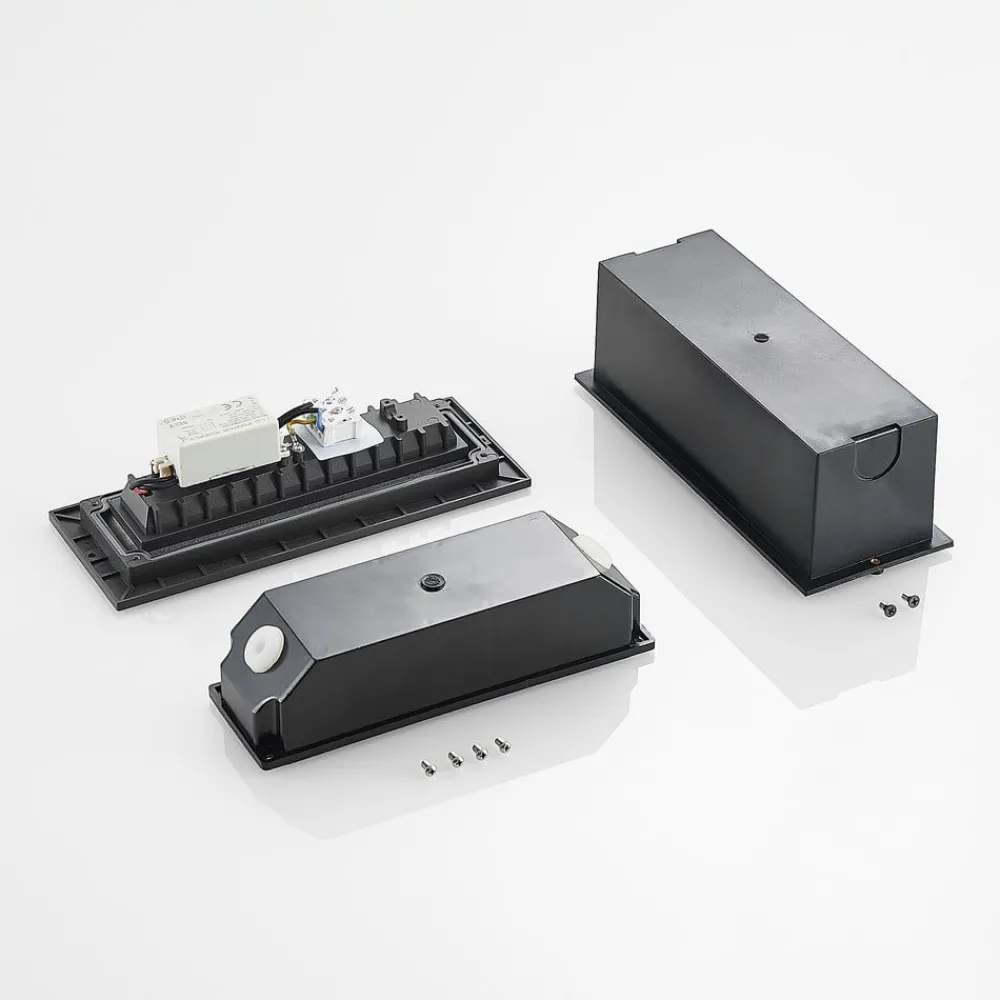 Den moderne LED-vægindbygningslampe Lachlain er et godt bud til belysning af udendørs trappeopgange. Den er ikke kun robust, men også meget moderne rent visuel, med sin kantede, aflange form og det mørkegrå aluminiumslegeme. Den integrerede LED-teknologi gemmer sig bag en hvid plastdiffusor, der udsender lyset ensartet i omgivelserne uden at blænde. Det er således ikke kun trappen, der belyses sikkert. LED-vægindbygningslampen Lachlain skaber også klare orienteringspunkter i mørket, når den monteres på husets facade.