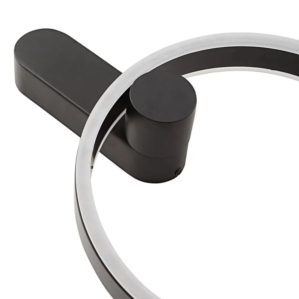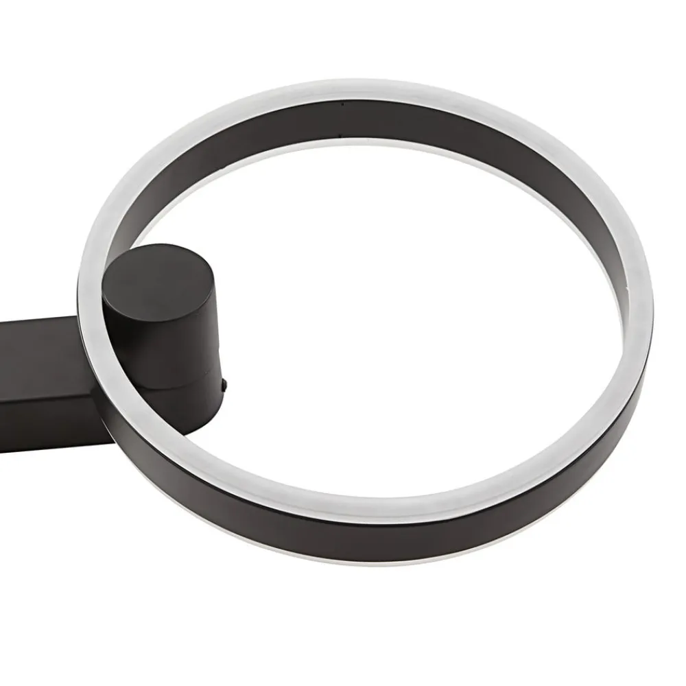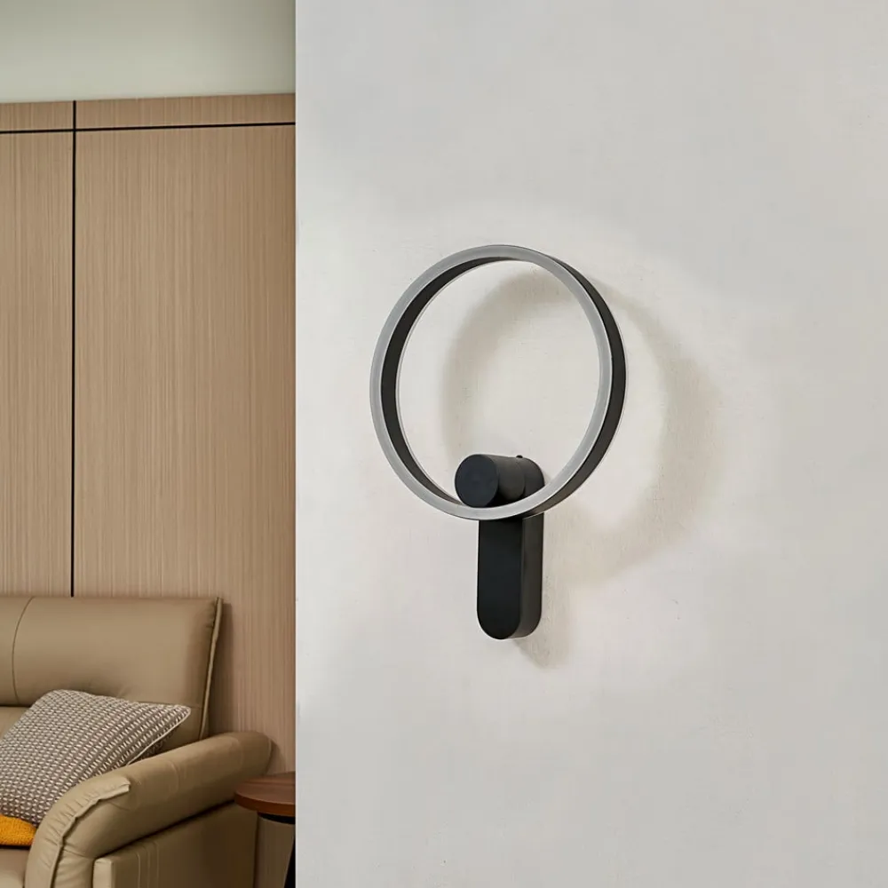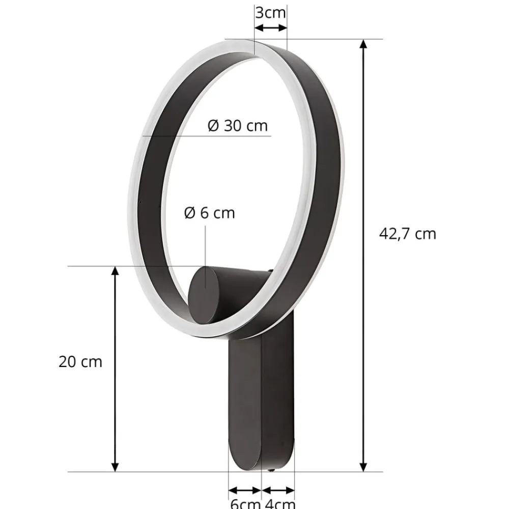 Ringformet Yekta LED-design-væglampe med Leuchten Direkt og step-dim-funktion Yekta-væglampen er en lyskilde til mange opholdsrum, især hvis de er indrettet i en moderne stil, da den designorienterede lampe består af en lysende ring i sort, som er udstyret med varmhvide LED’er på både for- og bagsiden og dermed giver et smukt lys i rummet. Ved hjælp af kontakten kan lysstyrken også varieres i tre trin og dermed tilpasses stemningen. 3-trins dæmpbar + off: En vægkontakt gør det muligt at tænde og slukke for lyset som normalt. Takket være 3-trins-dæmpningsteknologien med integreret slukfunktion kan den også dæmmes til tre forskellige lysstyrkeniveauer ved at trykke på kontakten flere gange: 100 %, 50 % og 10 %.
