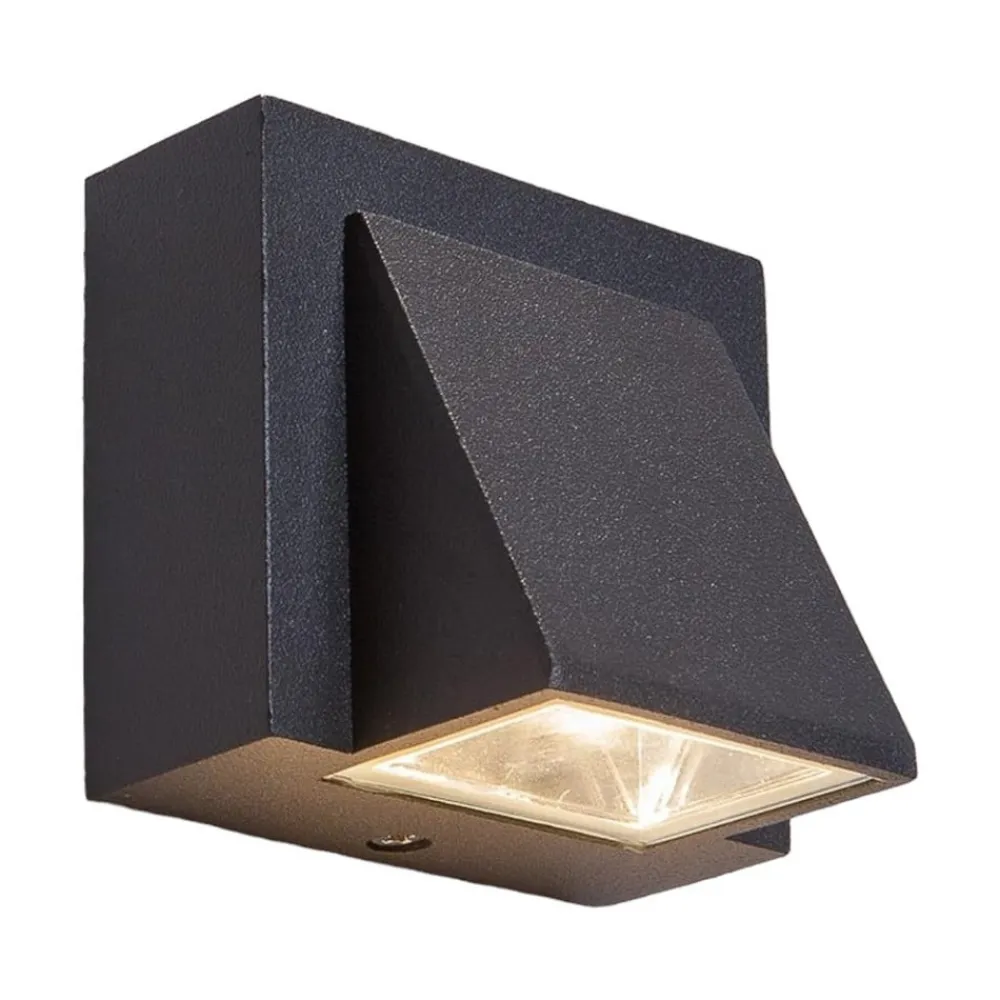 LED-udendørslampe Marik af aluminium i grafitgrå farve, kapslingsgrad IP54 – med Cree-brand LED Grafitgrå er en diskret farve med et moderne touch, som gør Marik til en meget alsidig udendørslampe. Lyset fra den 1 W Cree LED spotlight nedad i en bred vinkel for at undgå irriterende blænding, men er stadig lyst nok til at se alt det væsentlige. Med en lystemperatur på 3.000 Kelvin er lyset fra væglampen behageligt varmhvidt. Sådan ser fremtidens udendørsbelysning ud!