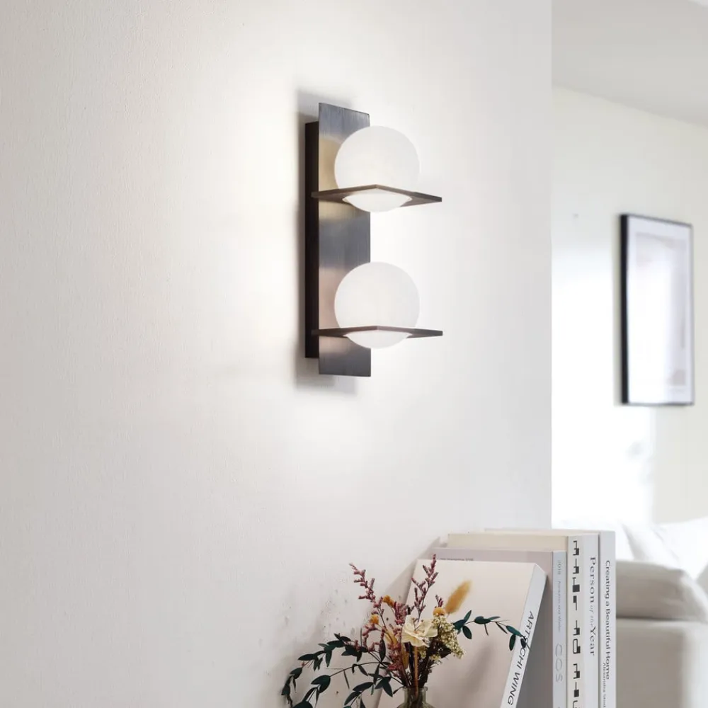 2 lyskilder Kulka væglampe med kuglerunde glasskærme Kulka væglampen med to hvide glaskugler er en moderne og stilfuld belysningsløsning til hjemmet. Med sit elegante design og uigennemsigtige kugler skaber den en behagelig atmosfære og giver et hyggeligt, blændfrit lys, som primært har en dekorativ effekt. Væglampen kan også dæmpes ved hjælp af dæmpbare lyskilder og en ekstern lysdæmper.