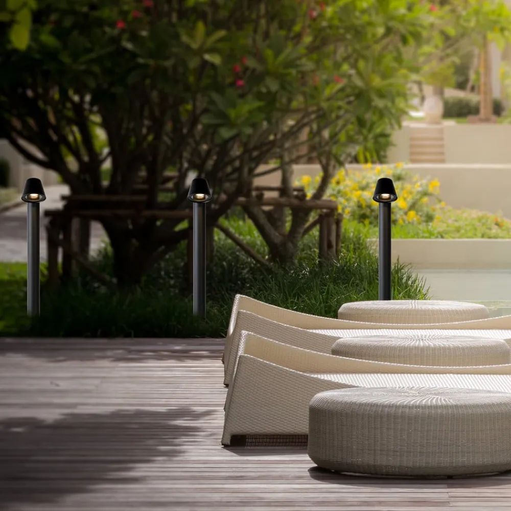 Antracitfarvet Dingo LED-stibelysning i moderne design Dingo LED-stibelysning kan installeres til belysning af terrasser, indkørsler, stier osv., især i moderne udendørsområder. Det varmhvide lys sendes nedad med en strålevinkel på 40°, så gangstier, trapper og indkørsler på grunden bliver perfekt oplyst. Armaturet er fremstillet af aluminium og glas og leveres med en ekstremt energibesparende og langtidsholdbar GU10 LED-lyskilde, som kan udskiftes.