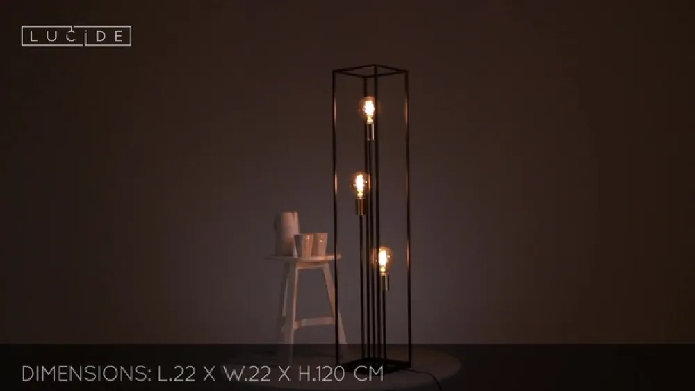 Lucide Gulvlampe Ruben, sort, tre lamper