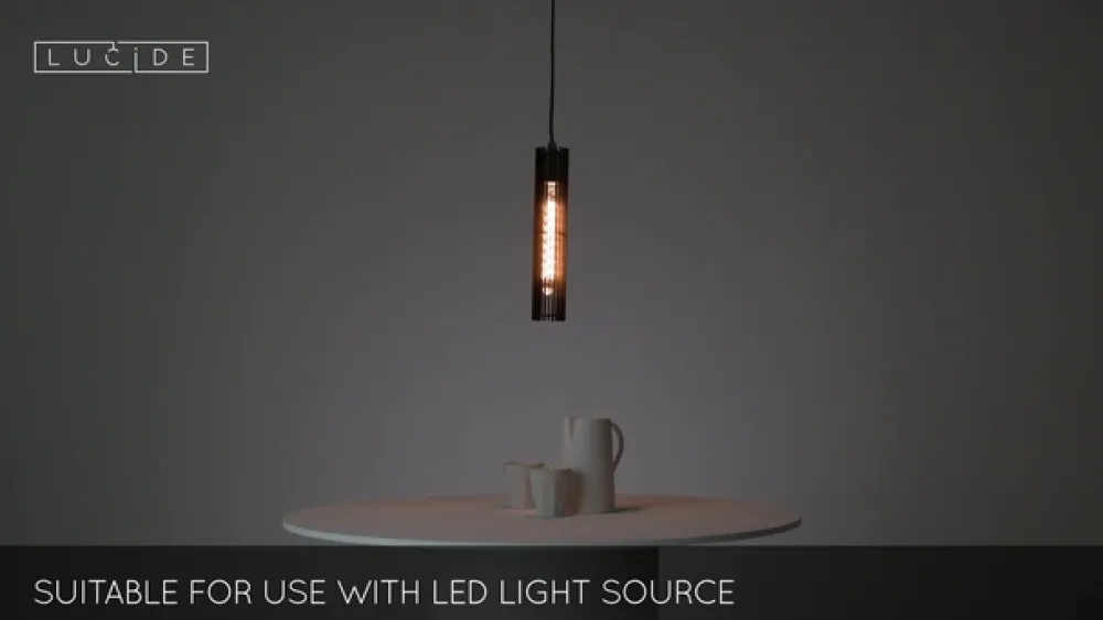 Lucide Pendellamper>Joanet hængelampe, røget grå/sort, glas, 132 cm lang