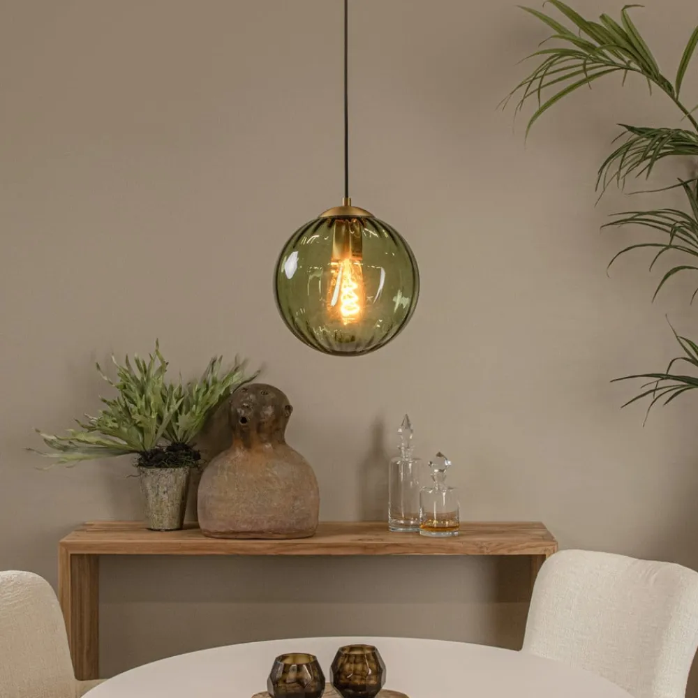 Monsaraz pendellampe, grøn, Ø 25 cm, glas, 1 lyskilde