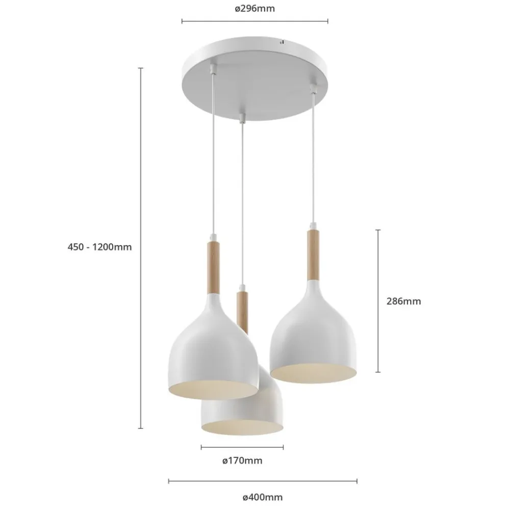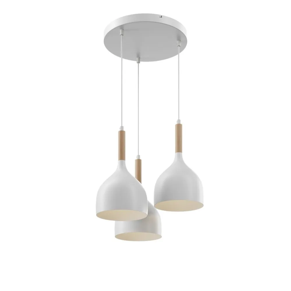 Hængelampen Noak kombinerer moderne design med naturlige elementer og sætter stilfulde accenter i ethvert rum. Kombinationen af højkvalitetsmetal og lyst træ giver lampen en tidløs elegance, der passer perfekt ind i forskellige indretningsstilarter. Med sin konstruktion med 3 lyskilder sikrer lampen en jævn og behagelig belysning, der er ideel til stuen, spisestuen eller køkkenet.