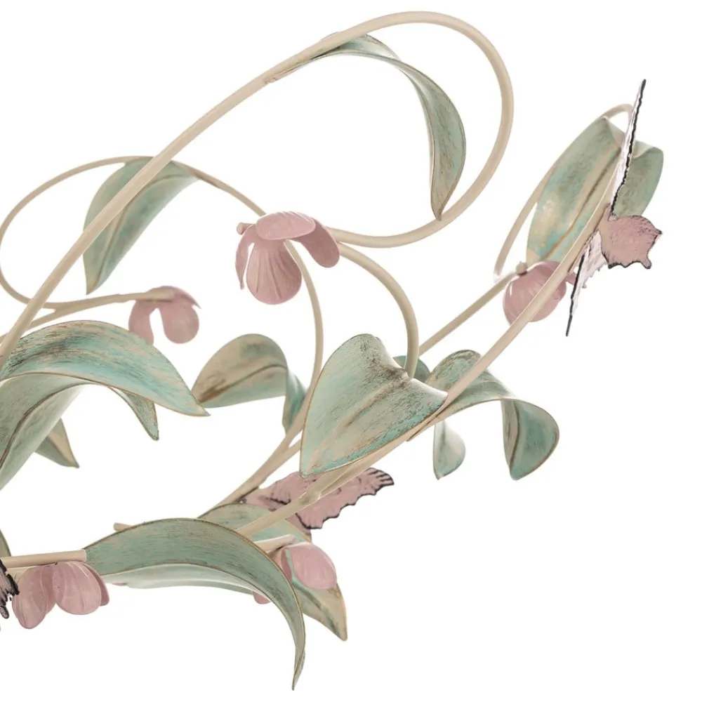 Loftlampen BUTTERFLY forener florentinsk stil med en harmonisk farvekombination af creme, grøn og rosé. Denne lampe med 3 lyskilder er fremstillet af rustfrit stål og plast i høj kvalitet og giver en imponerende lyseffekt, der skaber en stilfuld atmosfære i ethvert rum. Uanset om den hænger i stuen, soveværelset, entreen eller spisestuen, er BUTTERFLY en alsidig lampe, der giver ethvert rum et særligt præg.