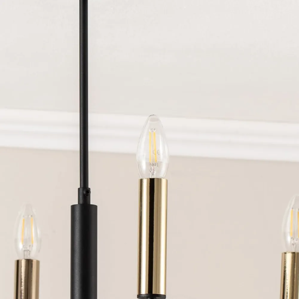 Lysekrone Hedwig med 6 lyskilder forener tidløs elegance med moderne funktionalitet. Den er fremstillet af højkvalitetsstål og fås i de elegante farver sort og guld, hvorved den sætter stilfulde accenter i enhver spisestue eller stue. Muligheden for ekstern dæmpning giver fleksibel tilpasning af lysintensiteten, så den ønskede atmosfære kan skabes.
