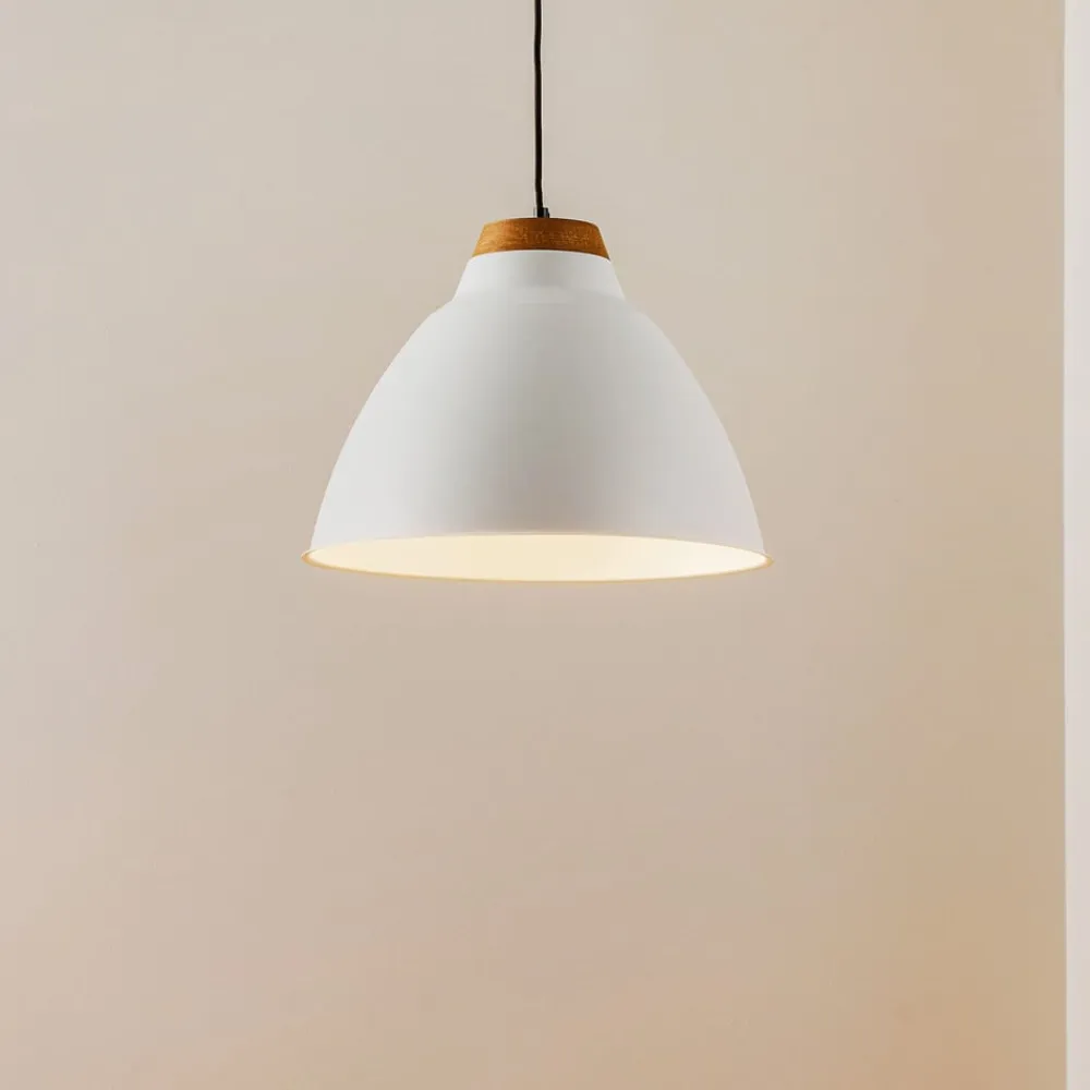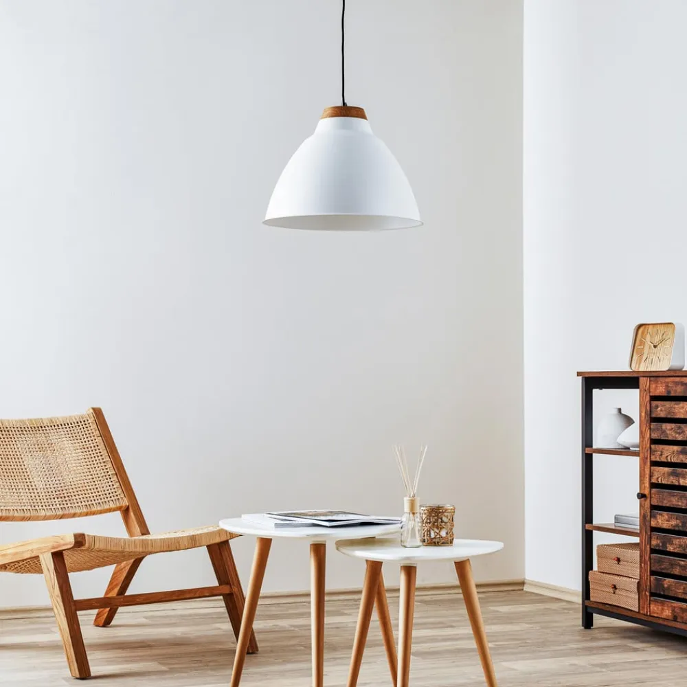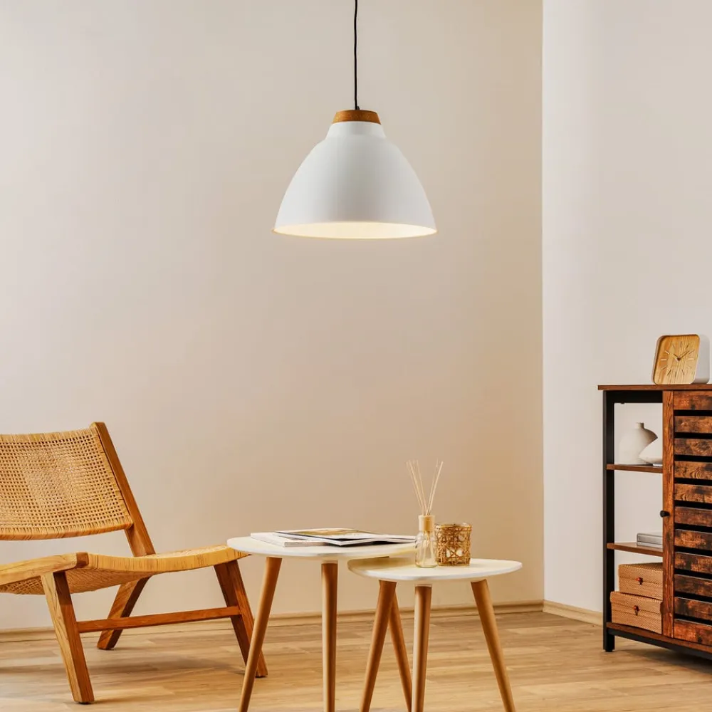 Hængelampen Skal forener moderne og skandinavisk design i en harmonisk kombination af metal og lyst træ. Denne stilfulde lampe er holdt i en elegant hvid farve, der passer perfekt ind i forskellige rumkoncepter. Uanset om det er i stuen, køkkenet eller spisestuen, sætter hængelampen Skal accenter overalt og skaber en behagelig atmosfære.