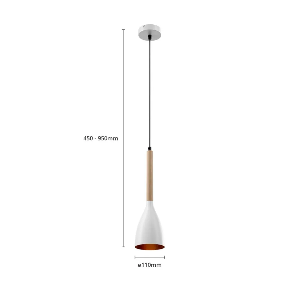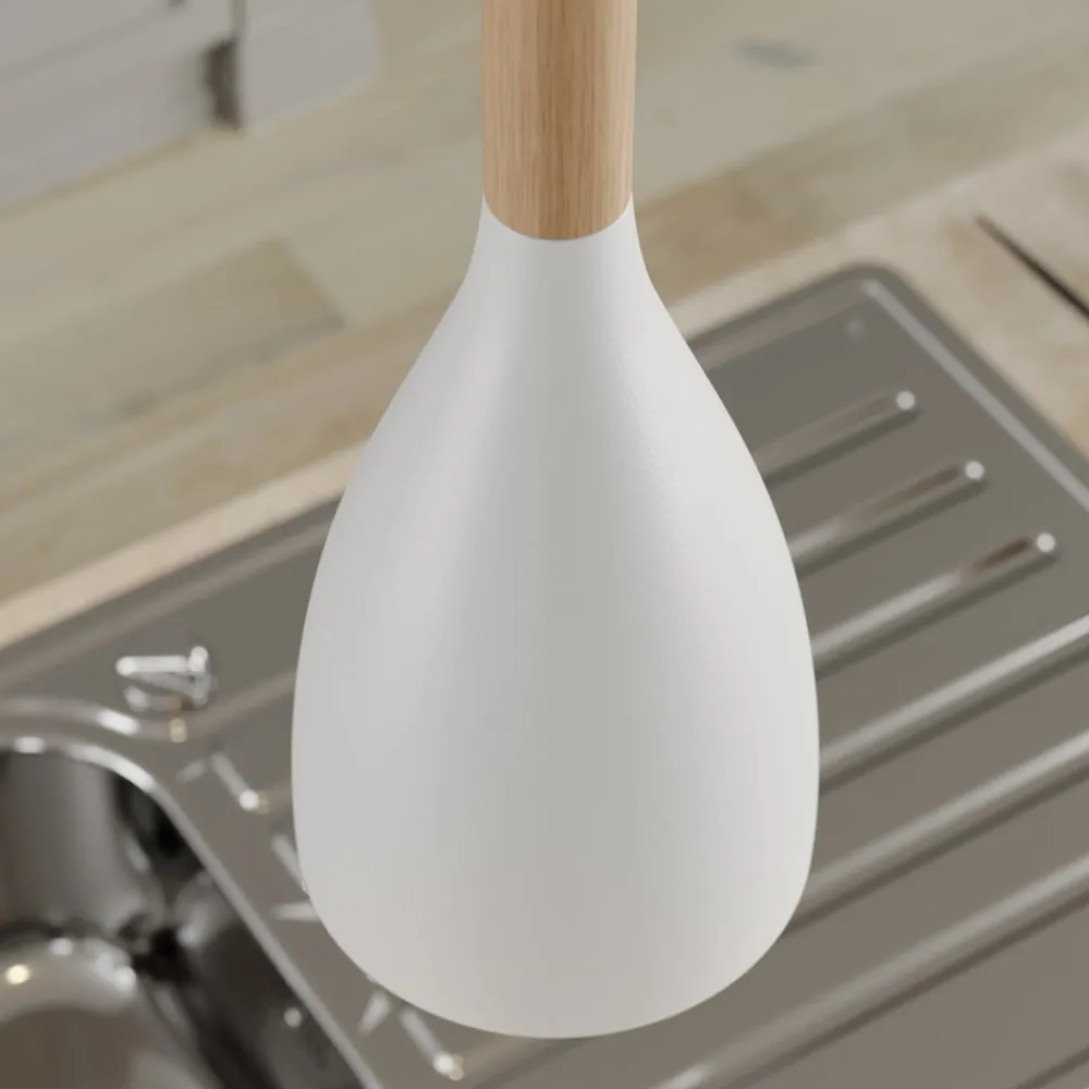 Muza pendel, enkeltlys, hvid/lyst træ