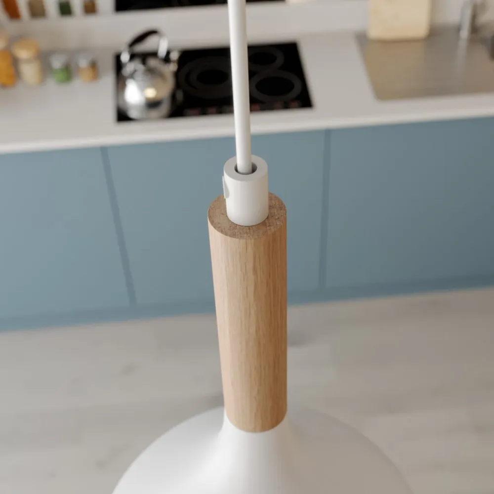 Hængelampen Noak kombinerer moderne design med naturlige materialer og sætter et stilfuldt præg i enhver rum. Lampen er fremstillet af højkvalitets metal og træ og passer perfekt ind i forskellige boligstilarter og skaber en varm og indbydende atmosfære. Kombinationen af hvid og lys træfarve giver lampen en tidløs elegance, der kommer til sin ret både i stuen, køkkenet og spisestuen.