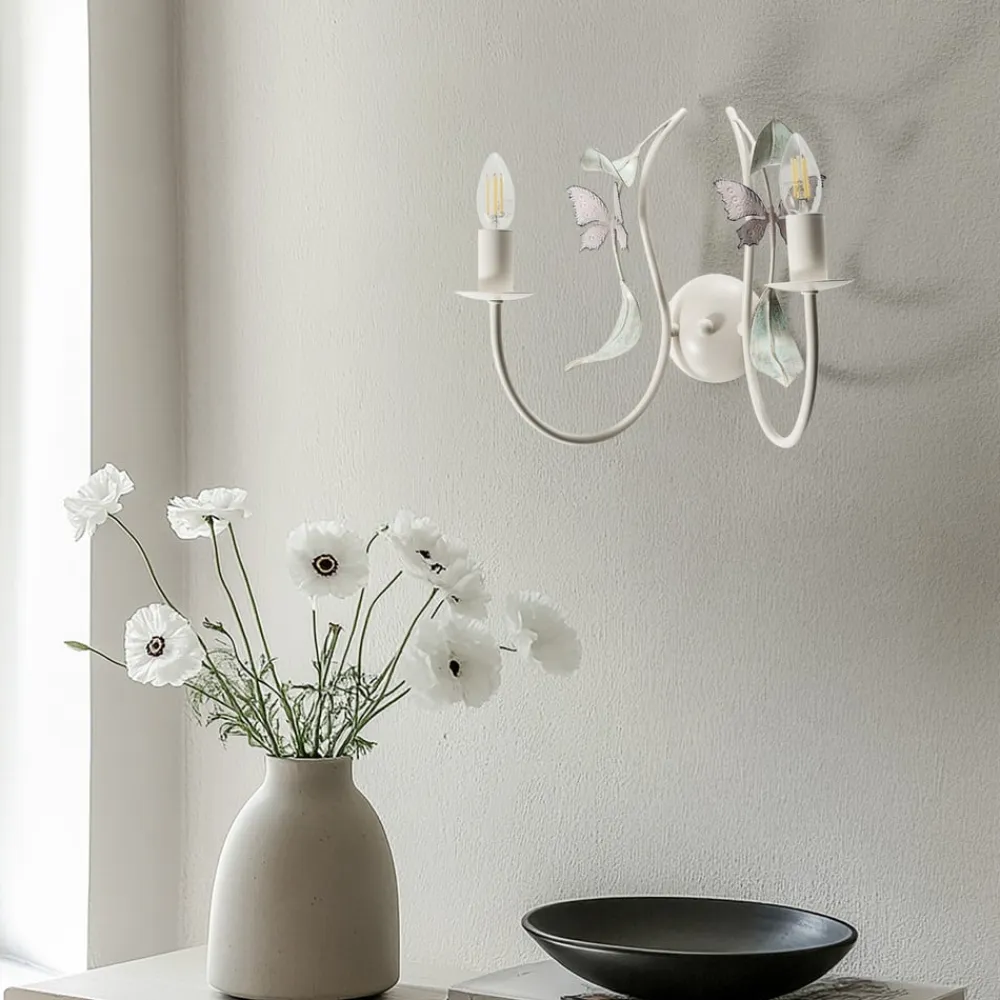 Summer væglampe, hvid/grøn/pink, bredde 25 cm, stål, 2 lyskilder
