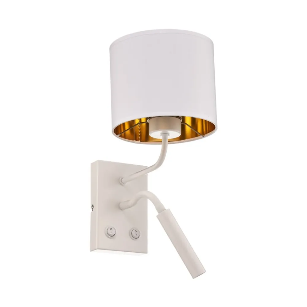Væglampe Soho imponerer med sit moderne design og den harmoniske kombination af hvid og guldfinish. Fremstillet af højkvalitets metal og stof passer denne cylindriske lampe perfekt ind i forskellige boligområder som stuen, soveværelset, entreen eller spisestuen. Det elegante udseende understreges af den omhyggelige forarbejdning og den europæiske kvalitet.