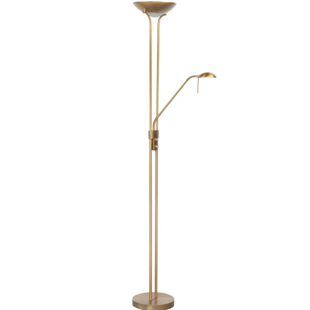 Bronzefarvet Lunaria LED-uplight med læselampe og 2 dæmpere Lunaria LED-uplight har et meget klassisk design, som kan integreres perfekt i landhusstilen såvel som i andre indretningsstile takket være den smukke bronzefarvede overfladefinish. Projektørskålen i metal har en åbning i bunden, som lukkes af en satineret skive. Det gør, at noget af lyset kan spotlightes nedad, mens størstedelen sendes opad og dermed oplyser rummet indirekte. Projektøren og læselampen kan tændes og dæmpes uafhængigt af hinanden ved hjælp af de to drejedæmpere, der er monteret på rammen, hvilket sikrer en absolut fleksibel og energibesparende belysning med Lunaria LED-læselampen.