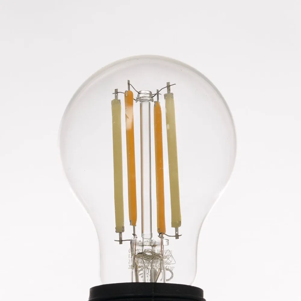 Smart filamentpære med E27-fatning – kan integreres i WLAN Den kan lyse i forskellige lysfarver og genererer et lys i varmhvid (2.700 K) til dagslys (6.500 K). Dette muliggør fleksibel belysning indendørs, og stemningen kan tilpasses fleksibelt. Derudover er stemmestyring mulig ved hjælp af Amazon Alexa eller Google Assistant. Denne er tilgængelig til både Android og Apple og kan nemt downloades på https://play.google.com/store/apps/details?id=luumr.app&hl=en_US eller https://apps.apple.com/da/app/luumr/id6470302637
