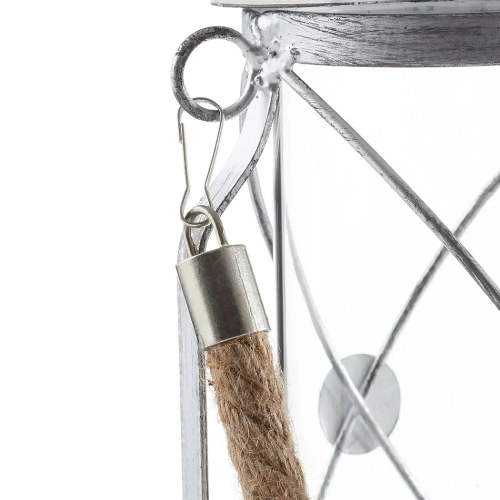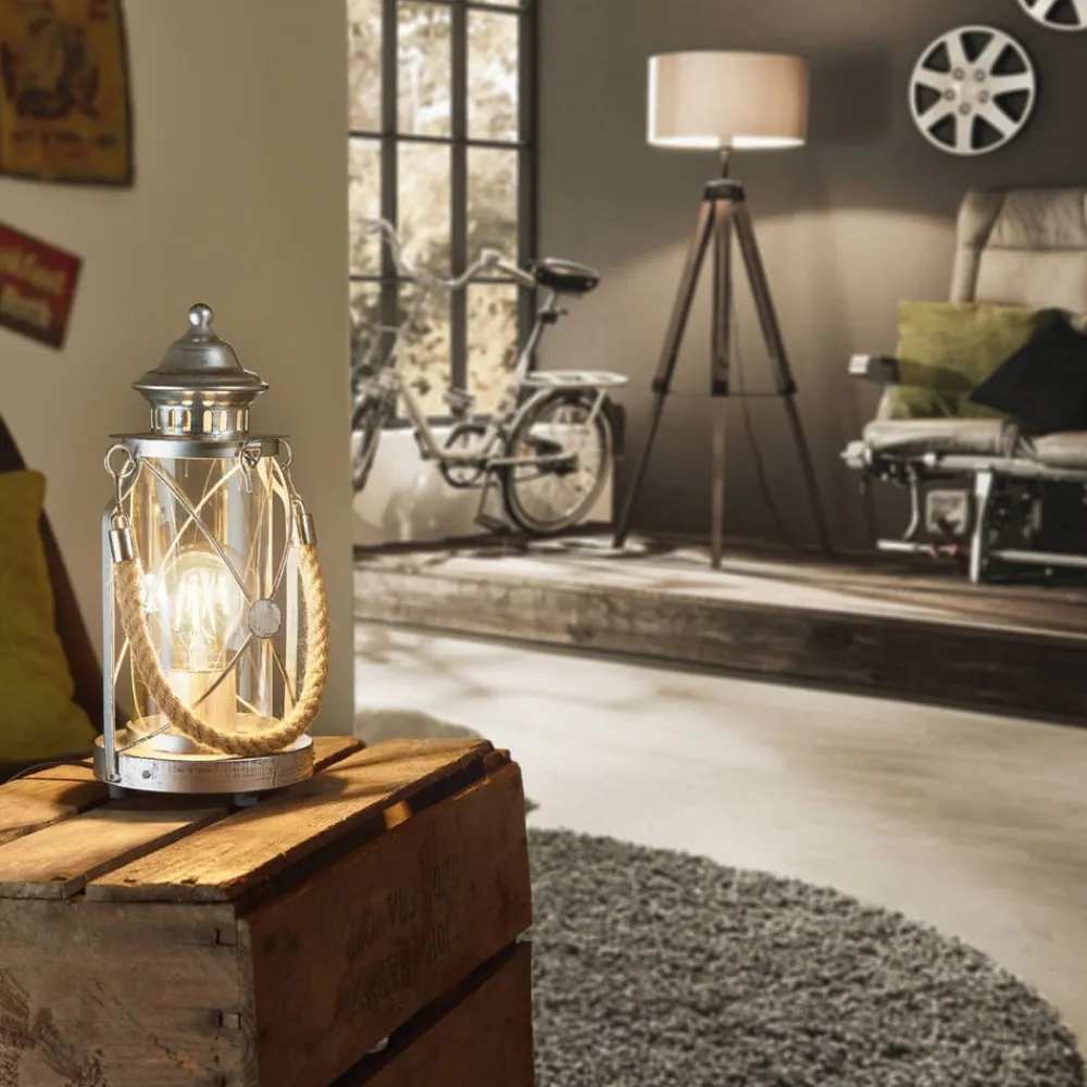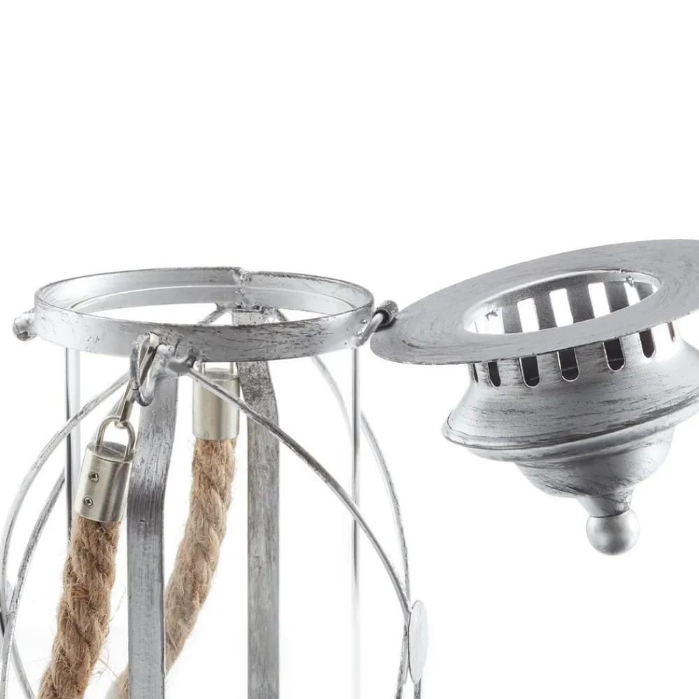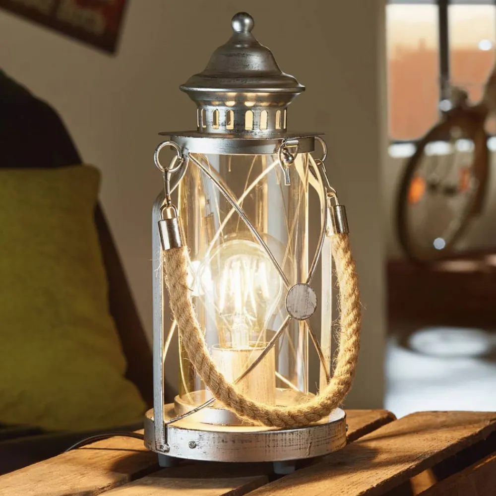Lanterne bordlampen Kirian har et design i sølv antik, som minder om fortiden uden strøm. Glascylinderen er placeret i et stålstel og øverst befinder der sig et snoreophæng. Hvor der tidligere blev brugt stearinlys, sørger elektriske lyskilder i dag for en stemningsfuld stemning i rummet, som lader sig betjene via et snoretræk. Hvad end den er tændt eller slukket – lanterne bordlampen er et sandt blikfang.