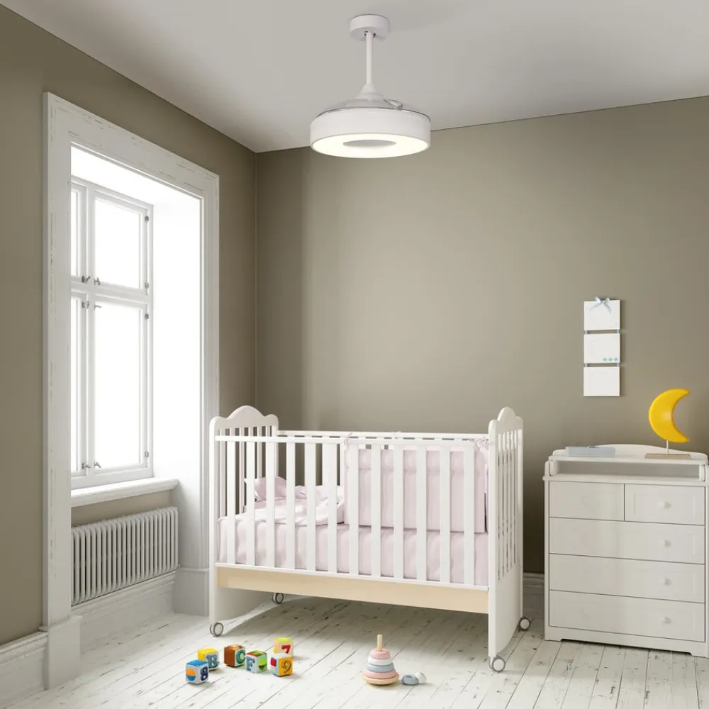 Loftventilator Coin Mini med fjernbetjening, tre vinger og lys med CCT-funktion