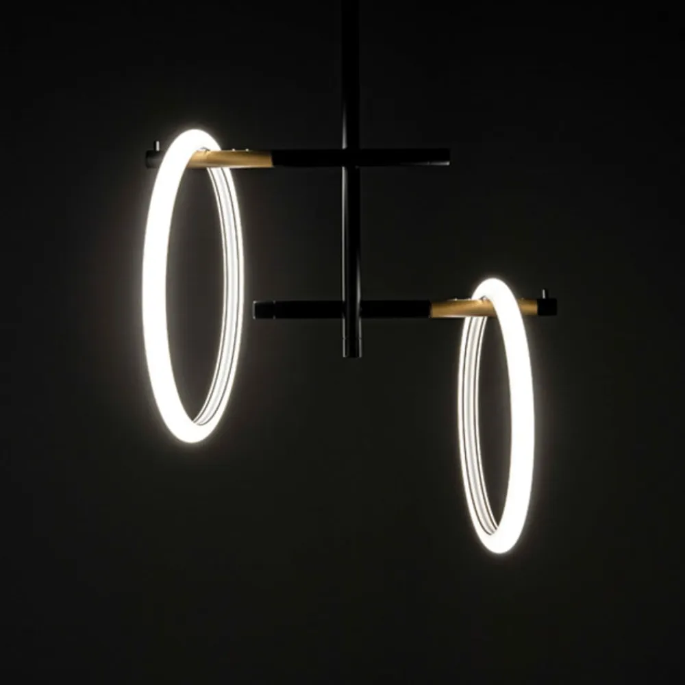 Ulaop LED-loftlampe – ideel ekstra belysning til mange rum Ulaop LED-loftlampen, som består af en rørformet metalramme og to lysende ringe, skaber en særlig hyggelig lysatmosfære i rummet. Rammen er udstyret med små forbindelsespunkter, som ringene hænges på og derefter begynder at lyse. Ringene hænger fra metalstænger i forskellige højder. Resultatet er et varmhvidt lys, der sendes meget blødt og homogent ud i omgivelserne på grund af plexiglasringenes mælkeagtige overflade. For at øge den omgivende belysning i store rum kan dette armatur også kombineres med andre armaturer fra denne serie – ekstra ringe på op til maks. 40 W kan monteres