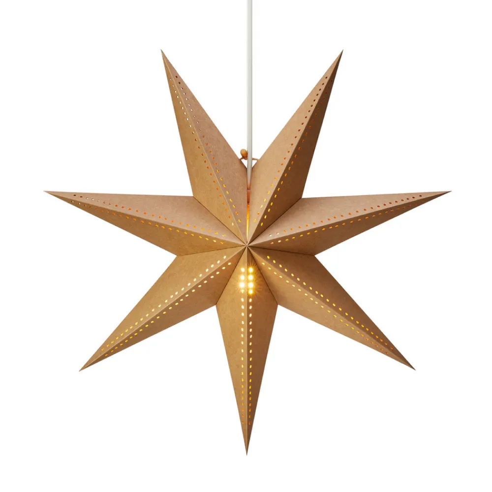 Papirstjernen Kiara i elegant brun farve forener tidløs elegance med alsidig anvendelighed. Dette dekorative belysningselement er fremstillet af højkvalitetspapir og passer perfekt ind i forskellige boligområder som stuen, spisestuen og entreen. Den varme farve skaber en hyggelig atmosfære og sætter stilfulde accenter, der værker ethvert rum.