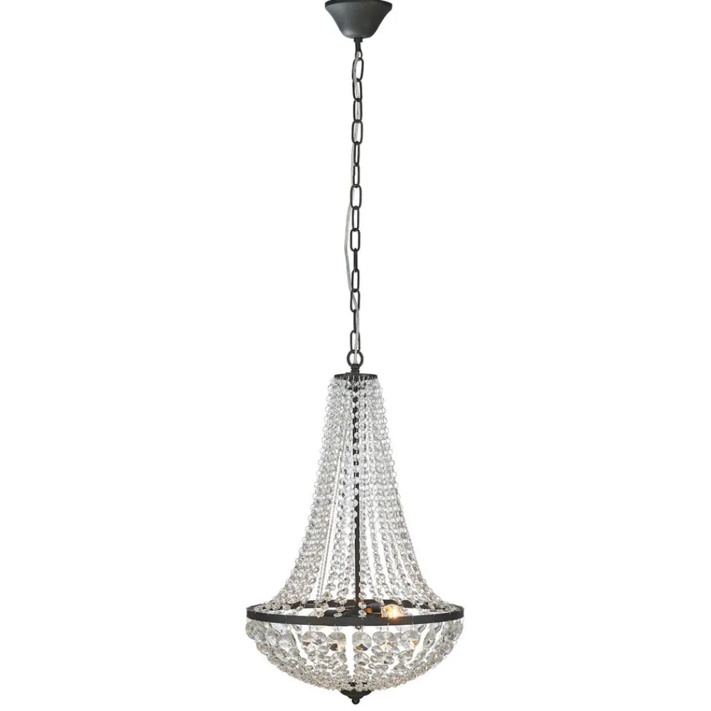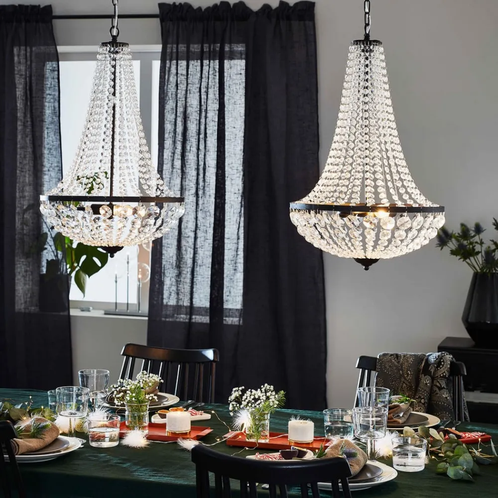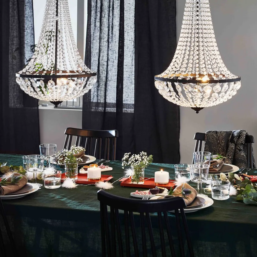 Lysekrone Gränsö forener tidløs elegance med moderne alsidighed og er det perfekte supplement til stilfulde stuer. Fremstillet af højkvalitets metal og ædelt krystalglas giver denne lysekrone enhver stue eller spisestue en luksuriøs atmosfære. Kombinationen af sort og transparent design sikrer et harmonisk samspil mellem farverne, der passer perfekt ind i forskellige indretningsstilarter.