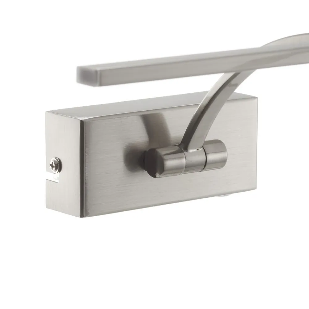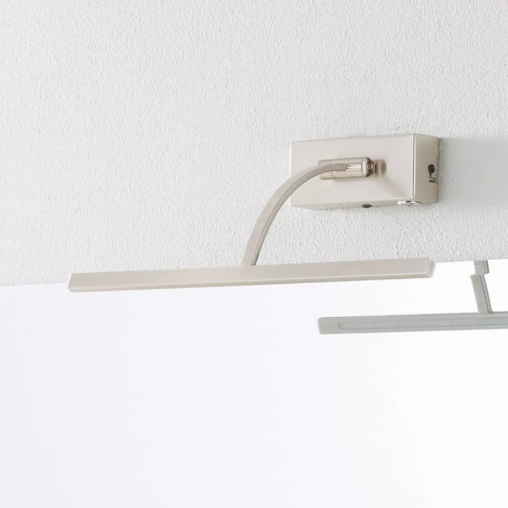 Dæmpbar Matisse LED-væglampe med bevægelig arm Den moderne og tidløse Matisse LED-væglampe er ideel til belysning af malerier eller spejle. Den fremspringende arm, som et aflangt, smalt armaturhoved er fastgjort til, kan bevæges op og ned. Det gør det nemt at justere ikke bare højden, men også lysstrålens retning. Lyset udsendes direkte over hele længden og skinner i en varm hvid farve. En afbryder er integreret i det vinklede vægbeslag. Den kan bruges til at tænde eller slukke for lyset. Den har også en lysdæmper, som husker den sidst valgte indstilling takket være hukommelsesfunktionen.
