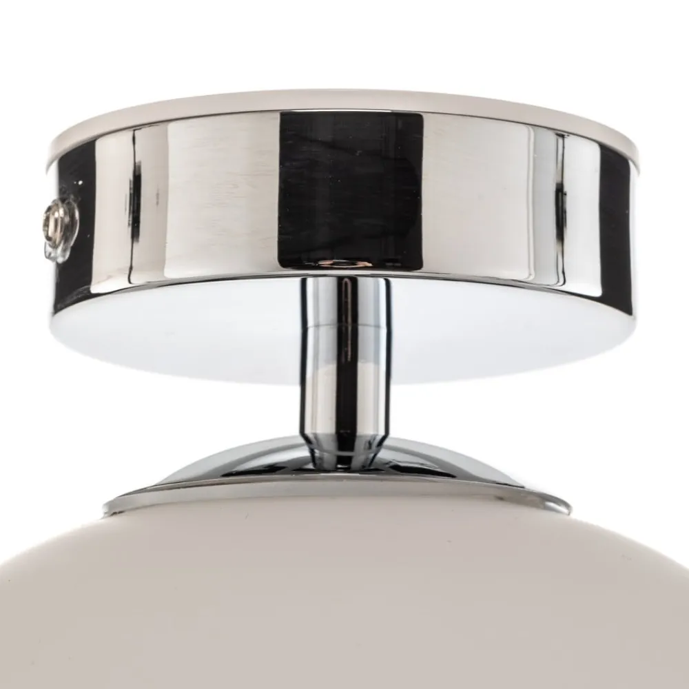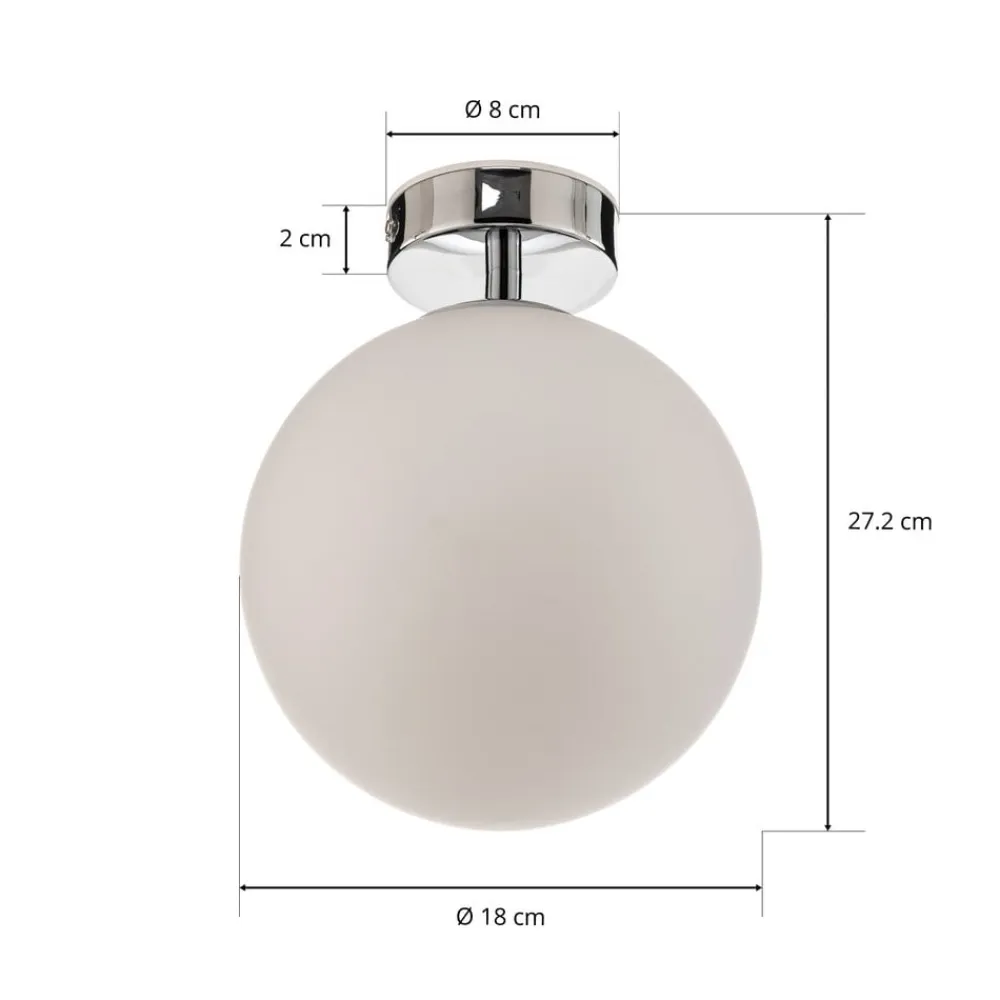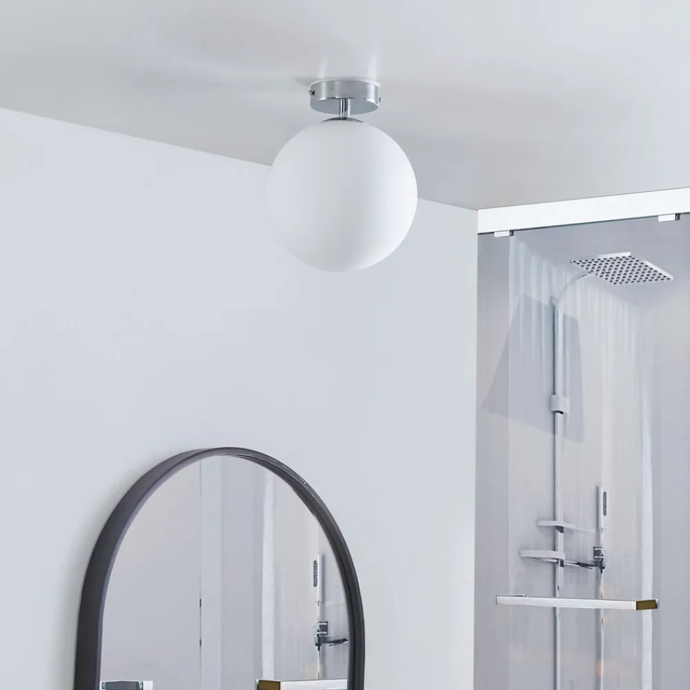 Elegant LED-loftlampe Maviris med kugleformet glasskærm og loftmontering i krom