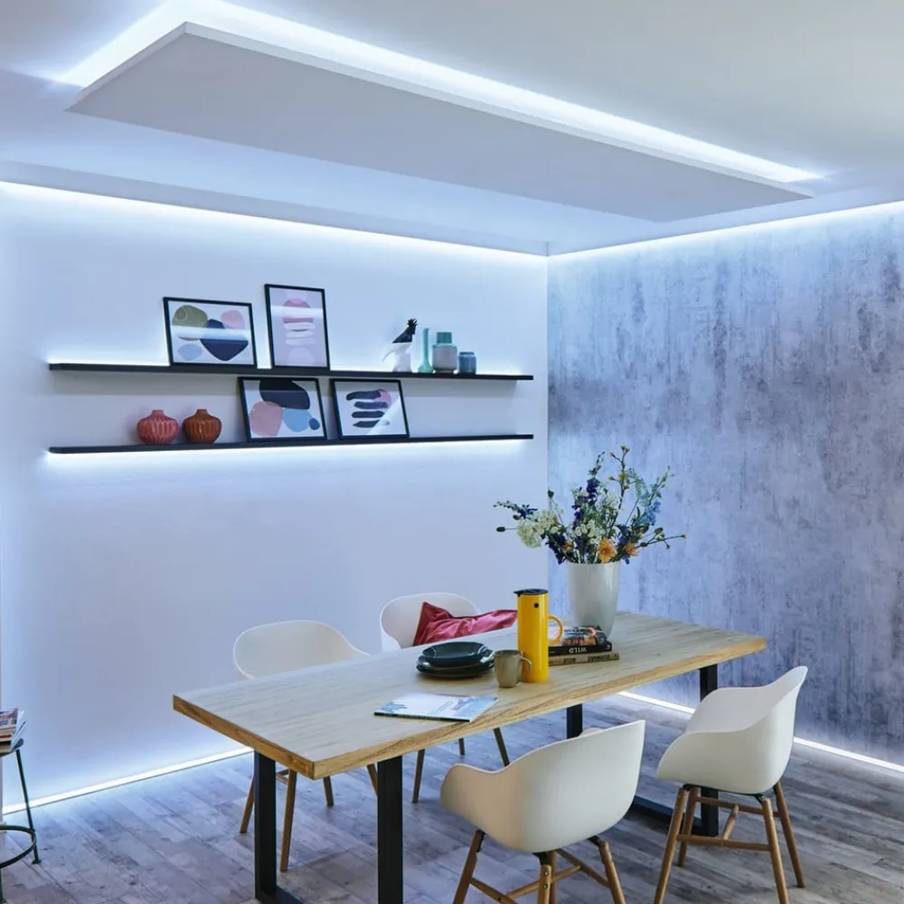 Med denne strimmel kan et eksisterende MaxLED LED-grundsæt udvides og forlænges efter behov. Den selvklæbende underside gør det nemt at montere strimlen, og den kan også afkortes til den ønskede længde.