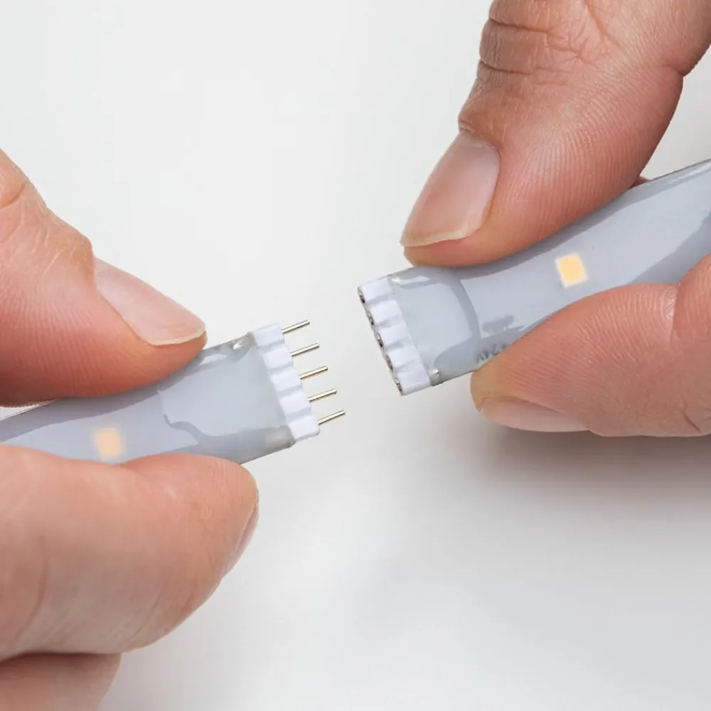 – Nem montering og tilslutning af strimlerne takket være 5-pin-stikket