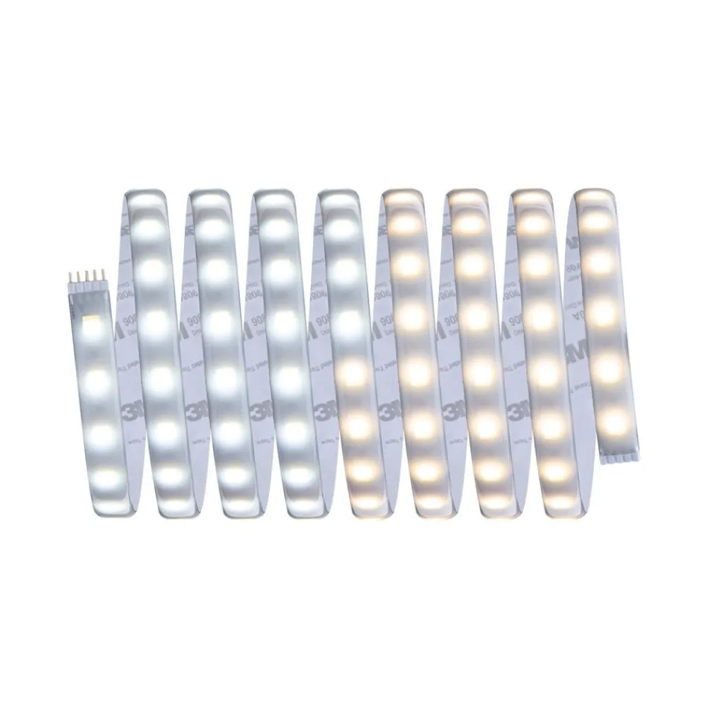 Max LED basissættet indeholder en 300 cm lang LED-strimmel. Installationen er meget nem. Strimlen limes blot på. Den er udstyret med en belægning, der beskytter mod vandstænk og støv. Takket være “Tunable White” – den intelligente styring af hvidt lys – kan LED-belysningen på striben, der har en samlet effekt på 20 watt, tilpasses fuldstændigt til de personlige behov: fra dagslys hvidt arbejdslys med 6.000 Kelvin til hyggeligt stemningslys med 2.700 Kelvin. Ballasten og styreenheden med infrarød fjernbetjening er allerede inkluderet i leveringsomfanget.